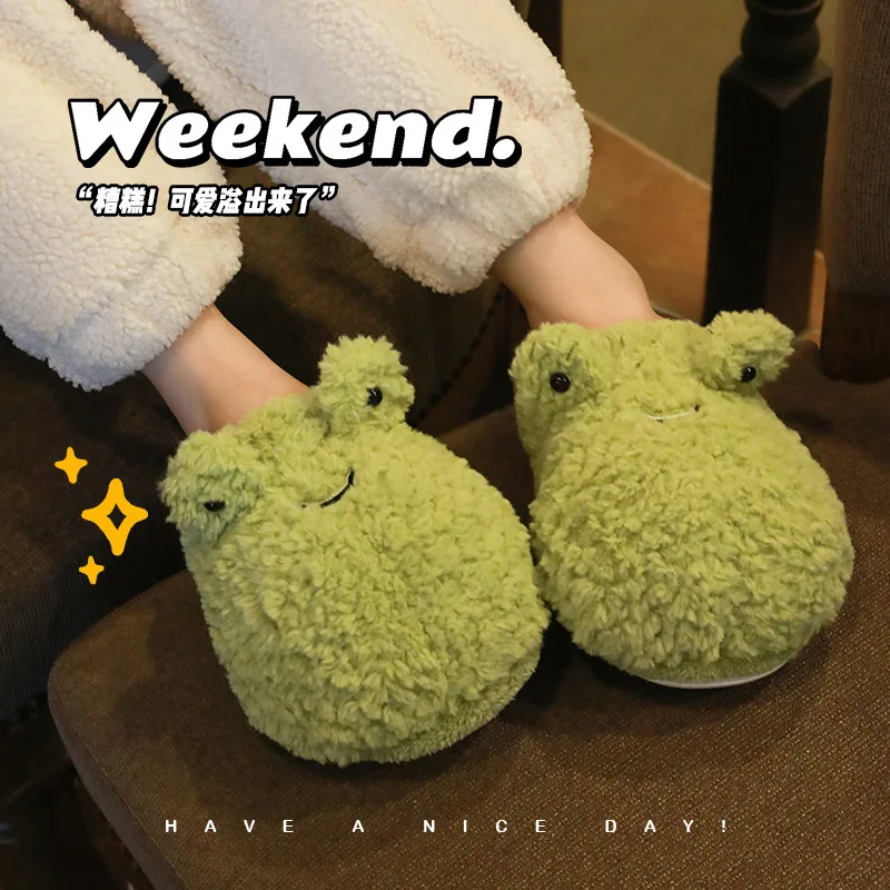 Тапки женские зимние на платформе, плюшевые домашние тапочки, Симпатичные лягушки