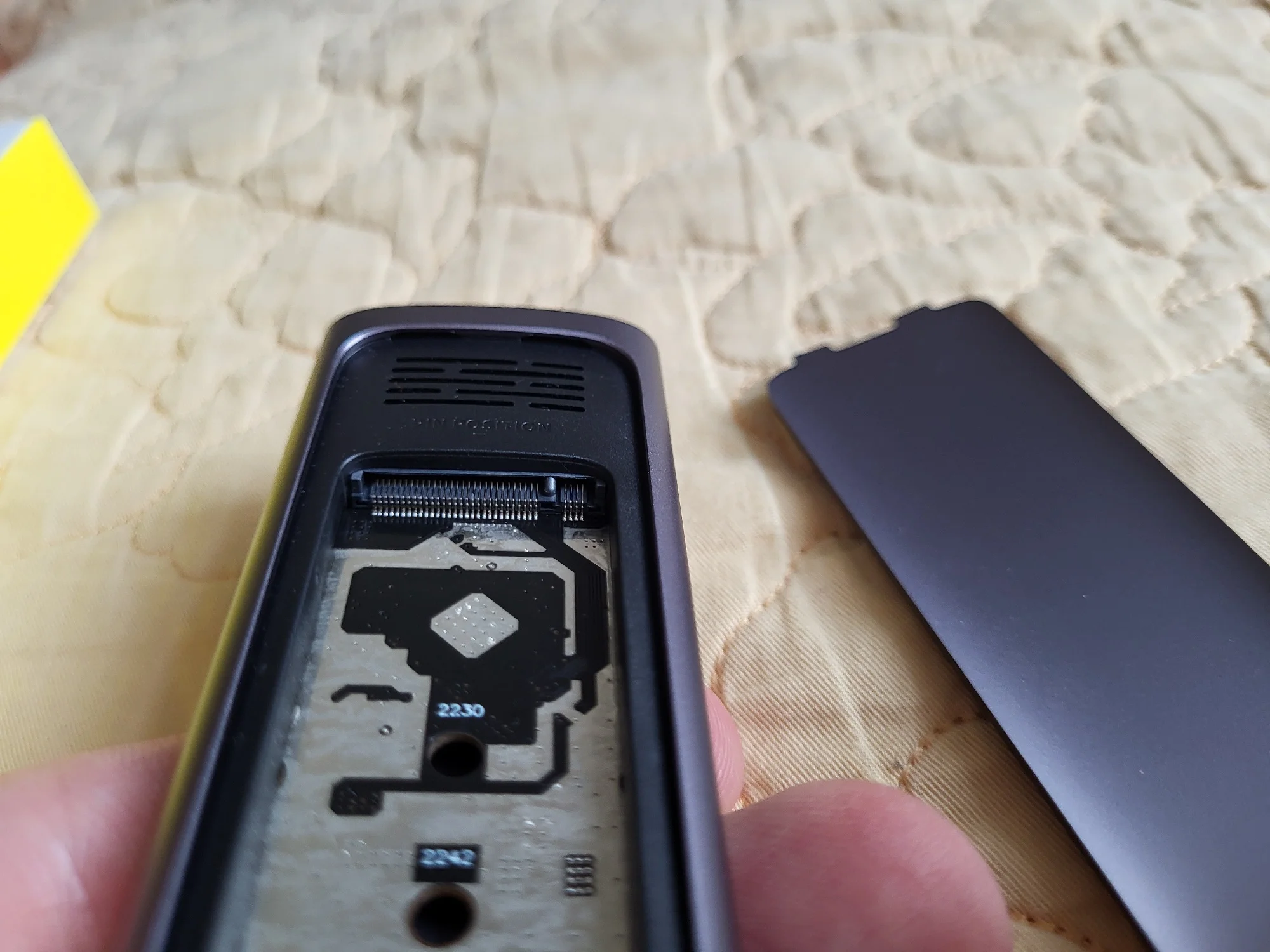 Корпус для твердотельного накопителя Baseus M2 SSD сделан очень качественно, а разъём USB-C в Корпуса для твердотельного накопителя Baseus по бокам усилен от истирания !!! Работоспособность проверялась на Внутреннем SSD-диске Samsung 980 PRO (MZ-V8P500BW) объёмом 500 ГБ (фирменная утилита SAMSUNG Magician диск видит как RTL9210B-CG, не показывает информацию о серийном номере SSD в отличие от программы HWiNFO64.EXE). SSD Samsung 980 PRO (MZ-V8P500BW) новый потому пока не отформатировать его через Управление дисками в Windows его видно не будет . Первые тесты в программе CrystalDiskMark 8 делал подключив SSD к ПК к порту А (USB 3.0) и получил низкие скорости как чтения так и записи, но поменяв подключение (в комплекте поставки есть 2 кабеля для подключения, сразу выбираем сразу кабель к порту C) к ПК к порту C скорости выросли в 2 раза !!! Размеры термопрокладки поставляемой в комплекте: Длинна 59 мм, ширина 21,5, толщина 2 мм.Sergey K. 10 февраля 2024