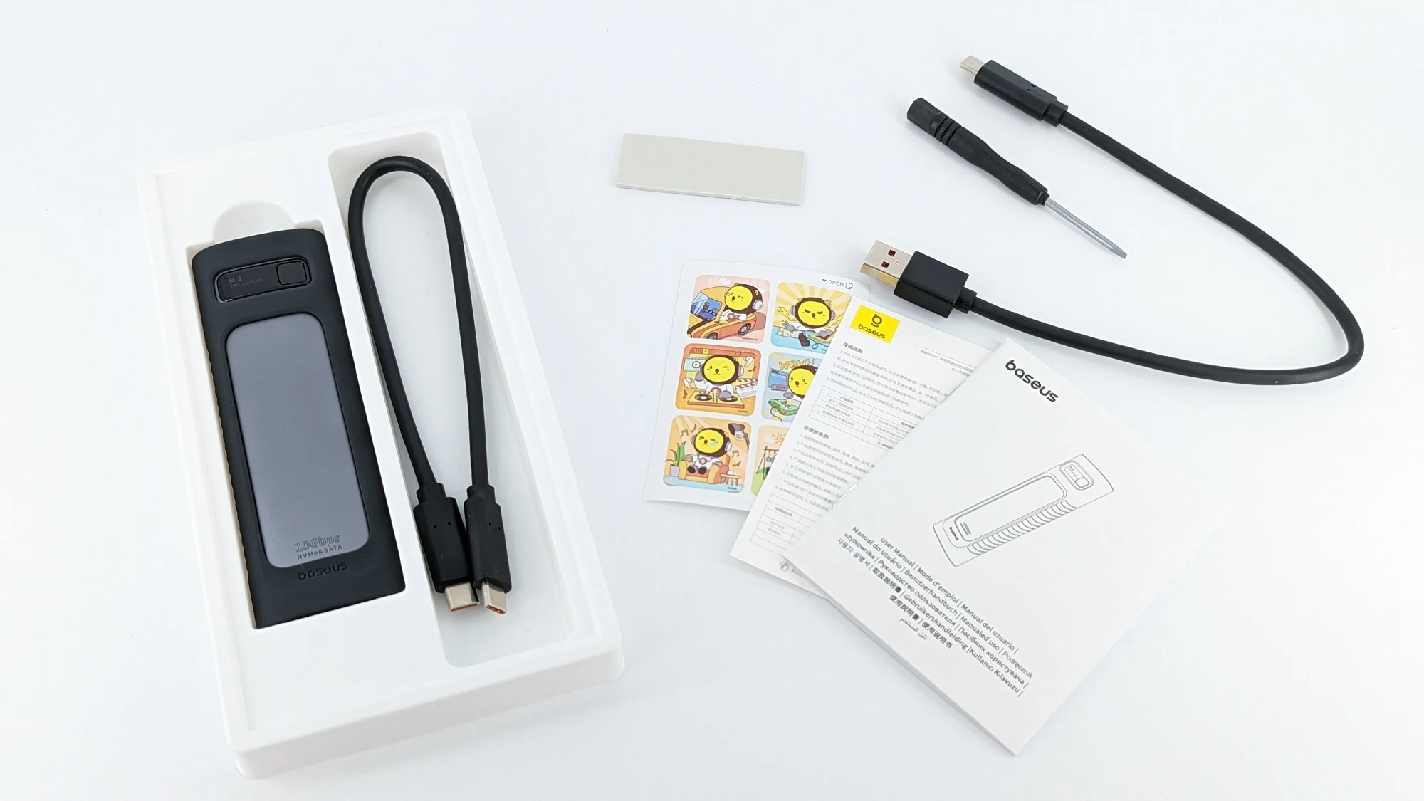 Baseus SSD NVME M2 Case Dual Protocol M.2 to USB Type C 3.2 Gen 2 Portable SSD...