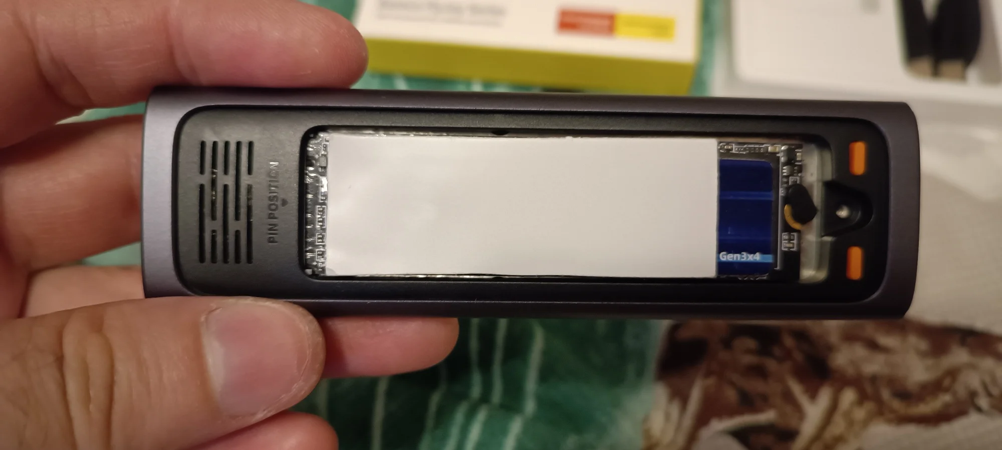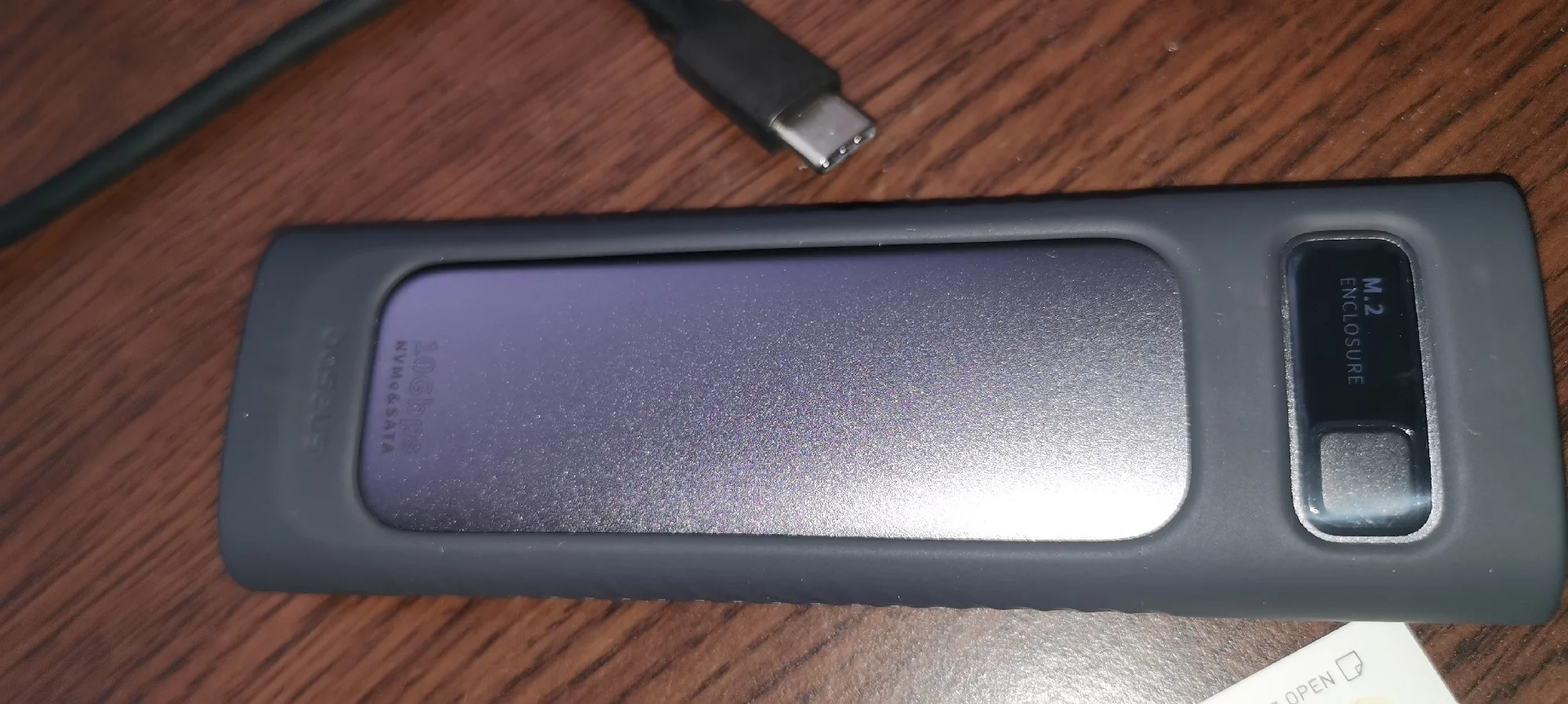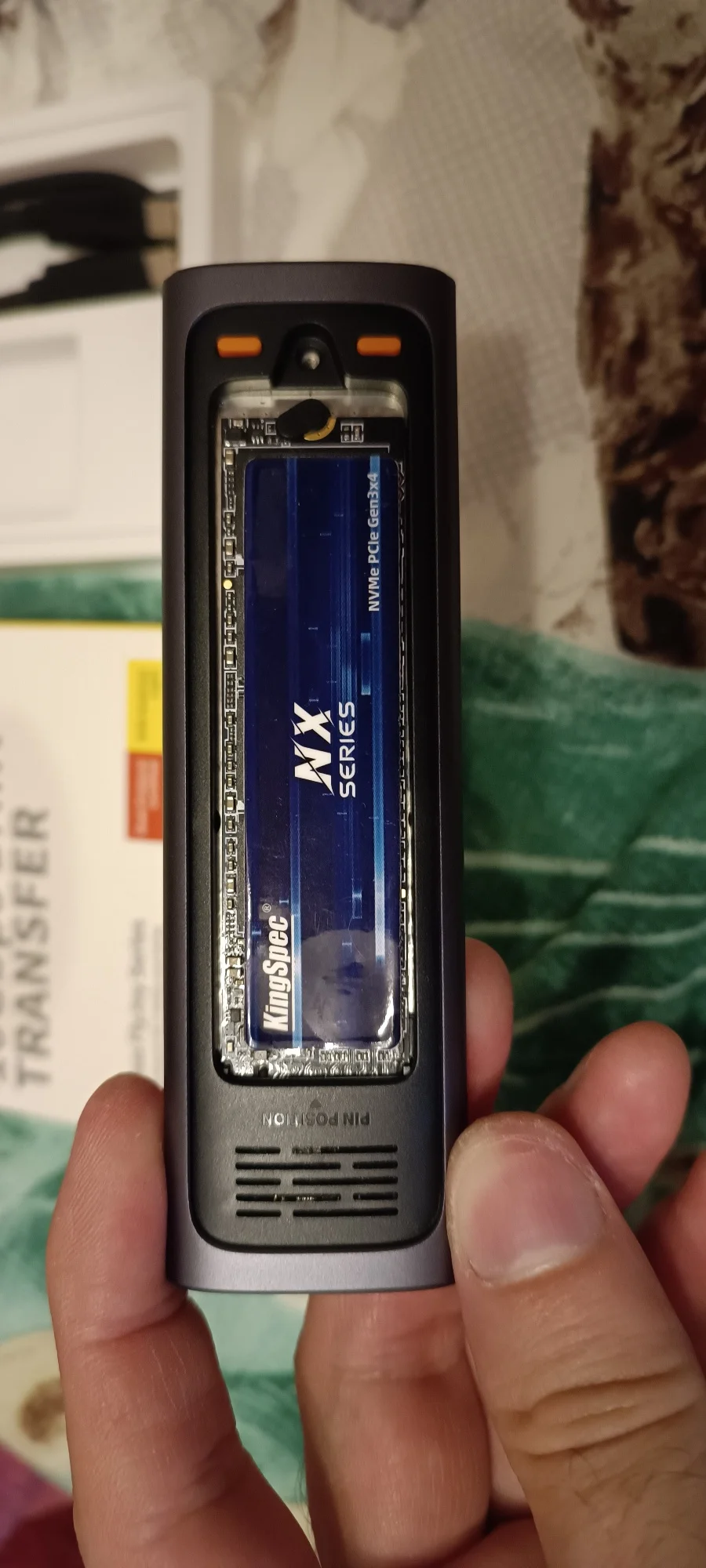 Кейс классный,давно хотел,а то эти флешки и hdd "переноски" утомляют порой низкой скоростью. Внешне,очень классный,правда чехол,так себе,чтоб на столе лежал и не царапался. Прислали обновленную версию,что супер,кнопка работает,как вкл.выкл,а если зажать,то как блок данных. Кабель один,совмещенный,могли бы и два положить,такой себе.По заявленным характеристикам, тест показал верно. На деле все иначе,но это уже вина ssd. Я использую netac nv3000,у него есть тоненькая пластина-радиатор,что уже неплохо,т.к.термопрокладка лучше придавливается к корпусу,поэтому по температурам все прекрасно. Решил заполнить диск полностью,вначале скорость была супер,аж 750мб.с.,потом по мере заполнения,резко упала в 2 раза,ну и вторую половину диска скорость была около 130 мб.с. Так что гигов по 400 качать не так долго будет,я доволен. Особенно на 11.11 дали купон али 1000+купон продавца рублей 350 и вышло это чудо около 1300₽,брал еще ssd,так бы еще дешевле было.