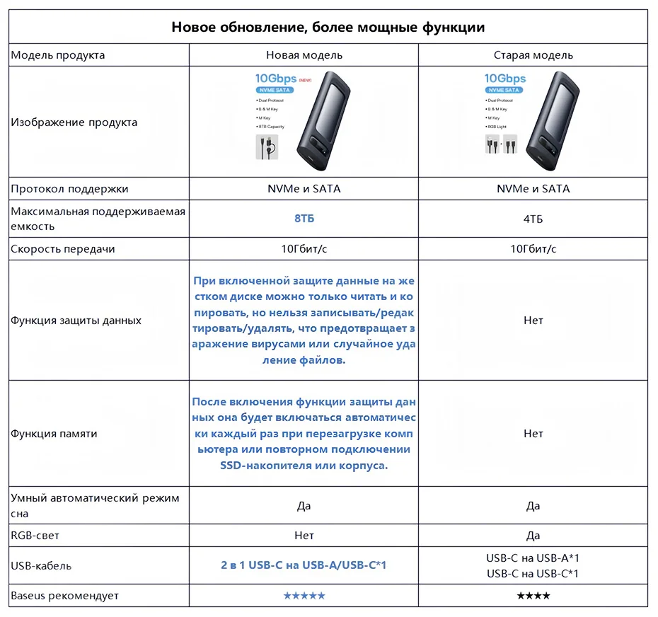 Сравнение корпуса Baseus M.2 NVMe SATA SSD