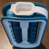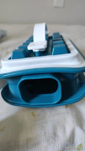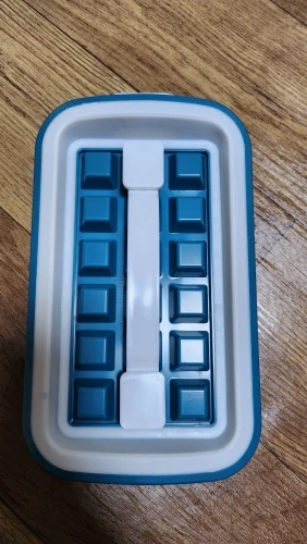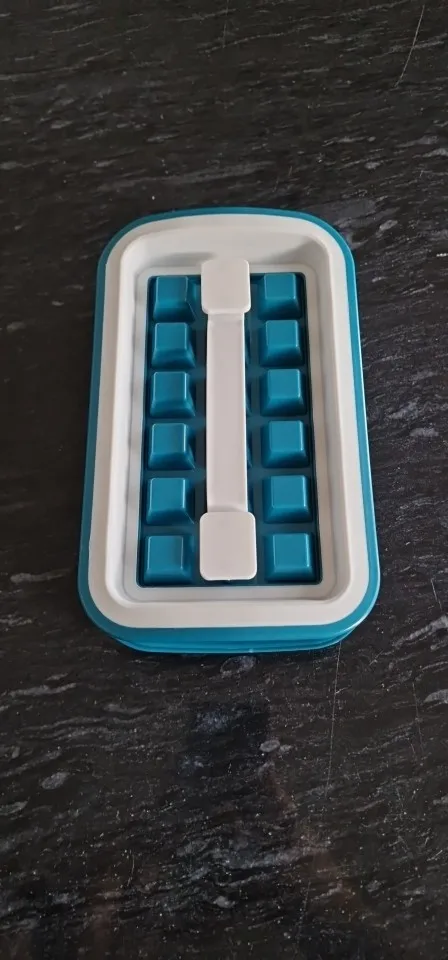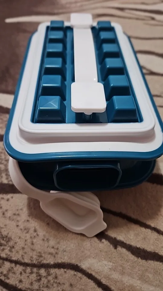 Жесткая пластиковая конструкция, за исключением белых частей, которые находятся в силиконе, должна быть помещена вода понемногу с закрытым, а затем крышка, есть 16 ледяных камней, которые будут формироваться.