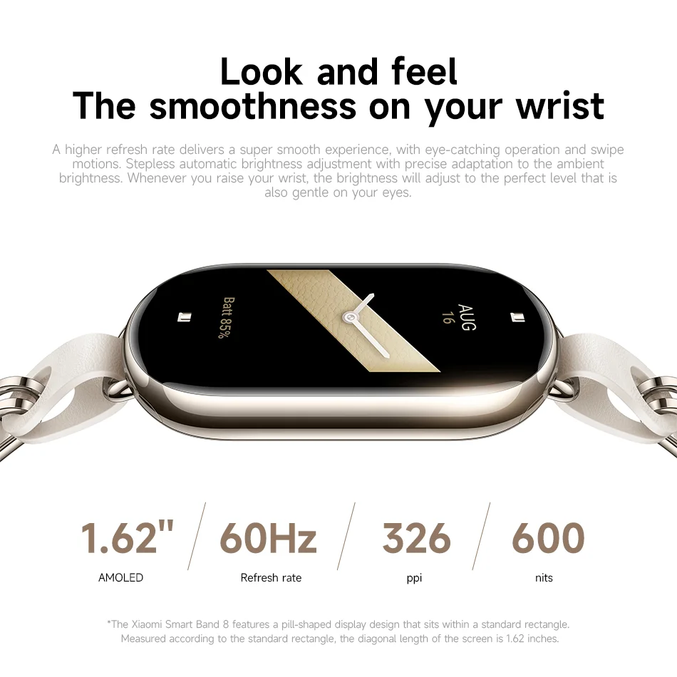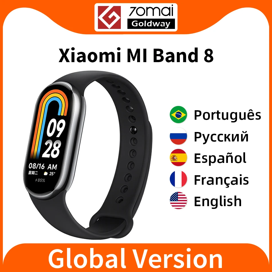 Xiaomi Mi Band 8 глобальная версия мониторинг пульса и уровня кислорода в крови 1,62-дюймовый сенсорный AMOLED-дисплей 150+ фитнес-режимов аккумулятор 190 мАч