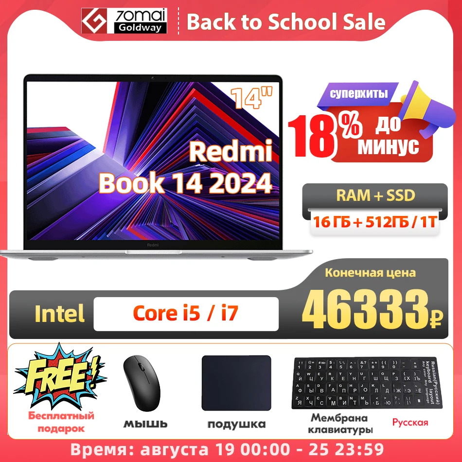 Отправка из России - а значит, НЕ облагается пошлиной + гарантия До минус 15 % по скидке Алиэкспресс/купонам магазина только на ноутбуки! 55652₽ Ноутбук Xiaomi Redmi Book Pro 15 2023 AMD R7 7840HS 16ГБ 512ГБ:https://aliexpress.ru/item/1005006