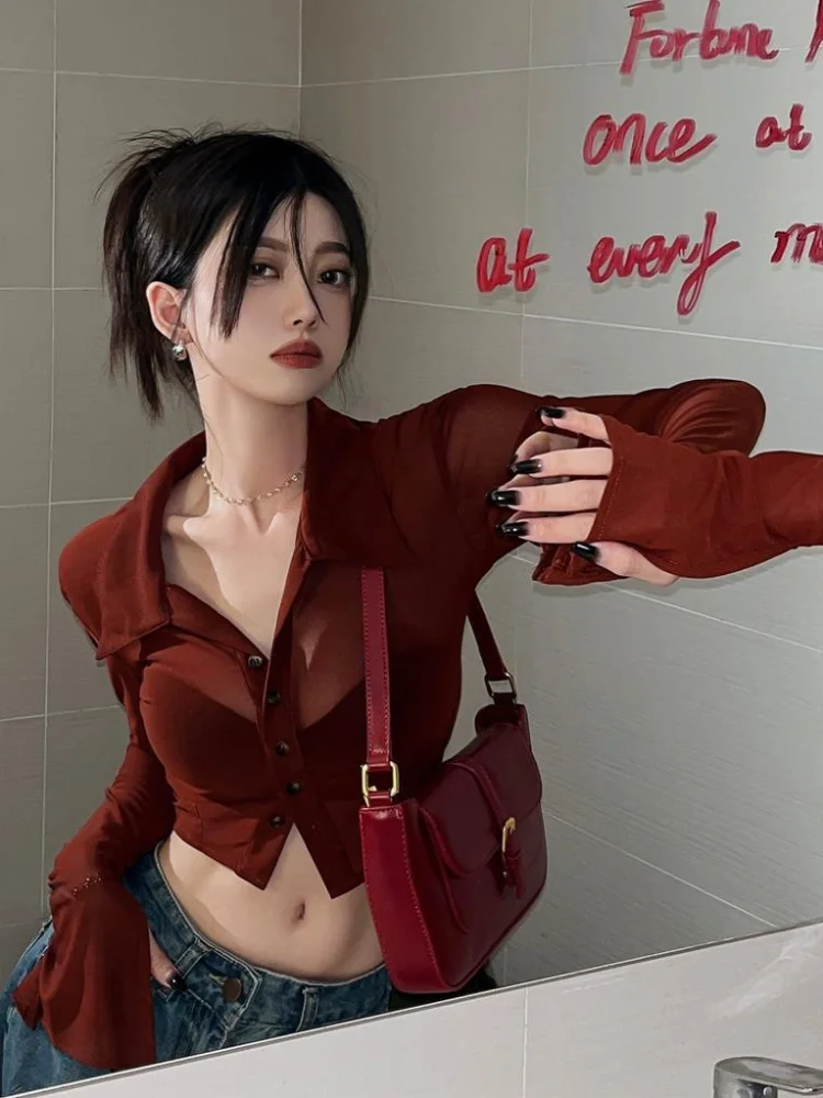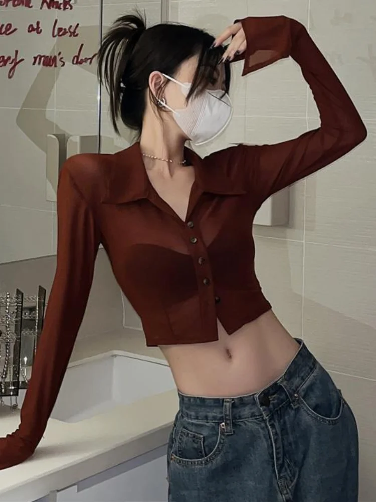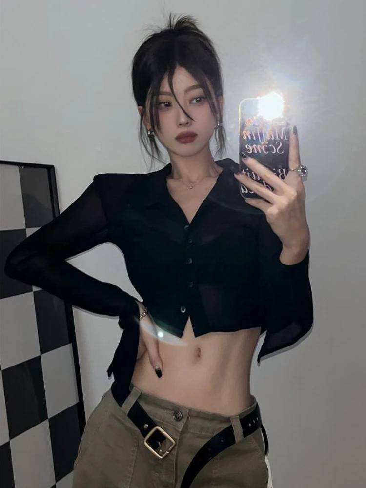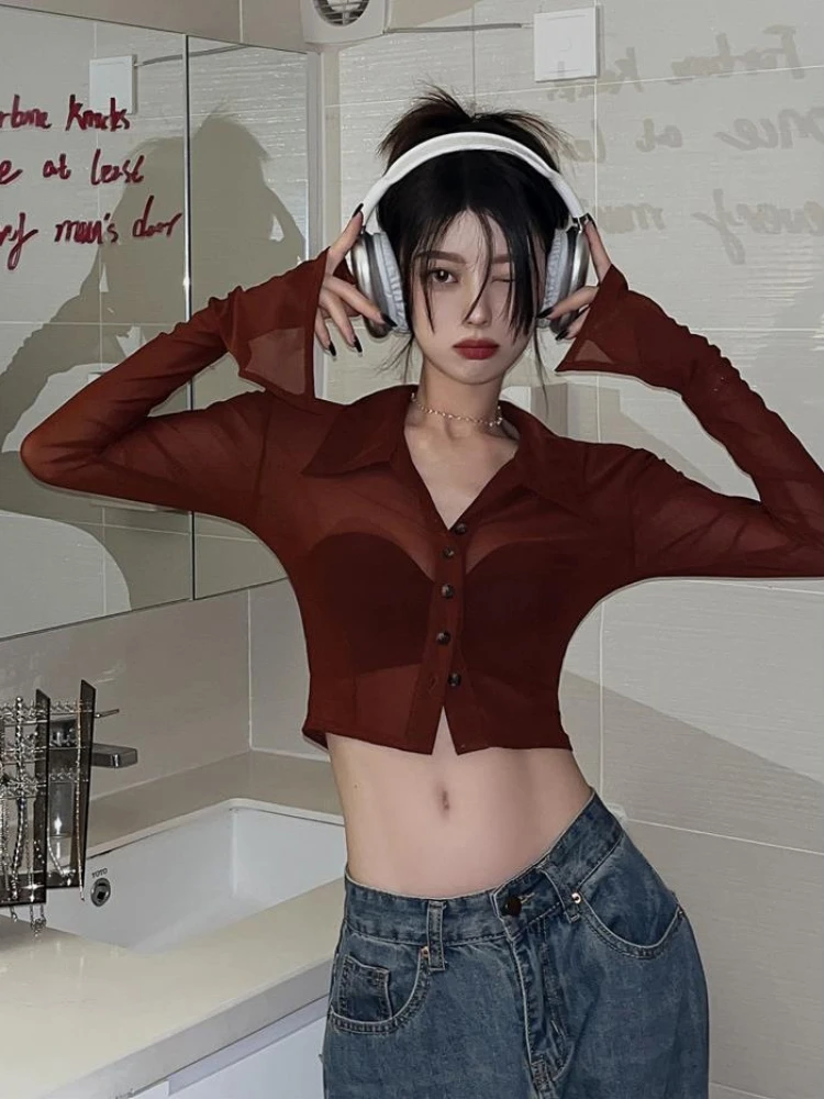 Блузка женская прозрачная в винтажном стиле с длинным рукавом