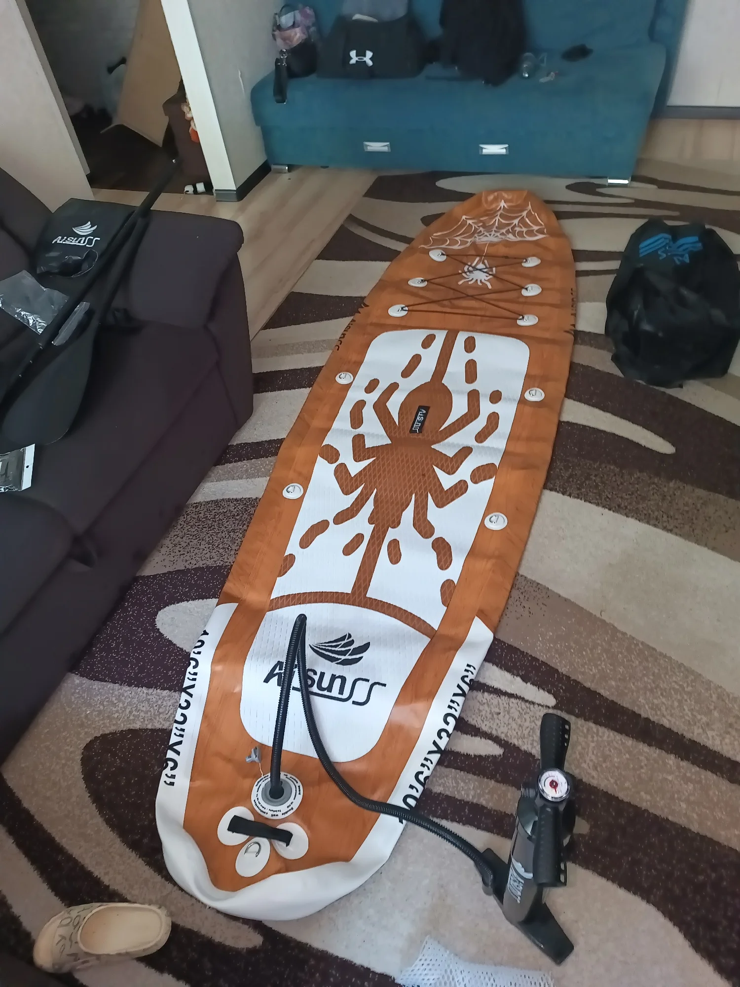 Sup красивый, комплектация хорошая - рюкзак, весло, ведро на 10 л, тубус оранжевый, чехол для телефона, насос в возможностью спуска, всякие ремешки. Брал по распродаже за 11203р (в мае 2024 года), доставка курьером (задержали на 3 недели)Egor T. 24 июня 2024