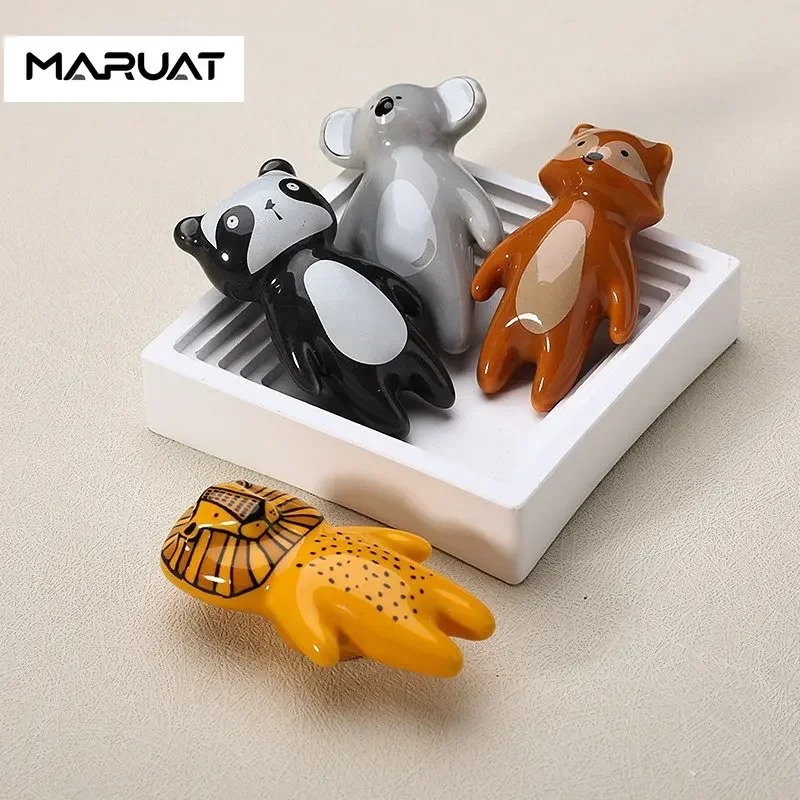 Мультяшная мебель, ручки в виде животных, ручка ящика, ручка для шкафов и ящиков, ручка в виде льва, панды, лисы для детей