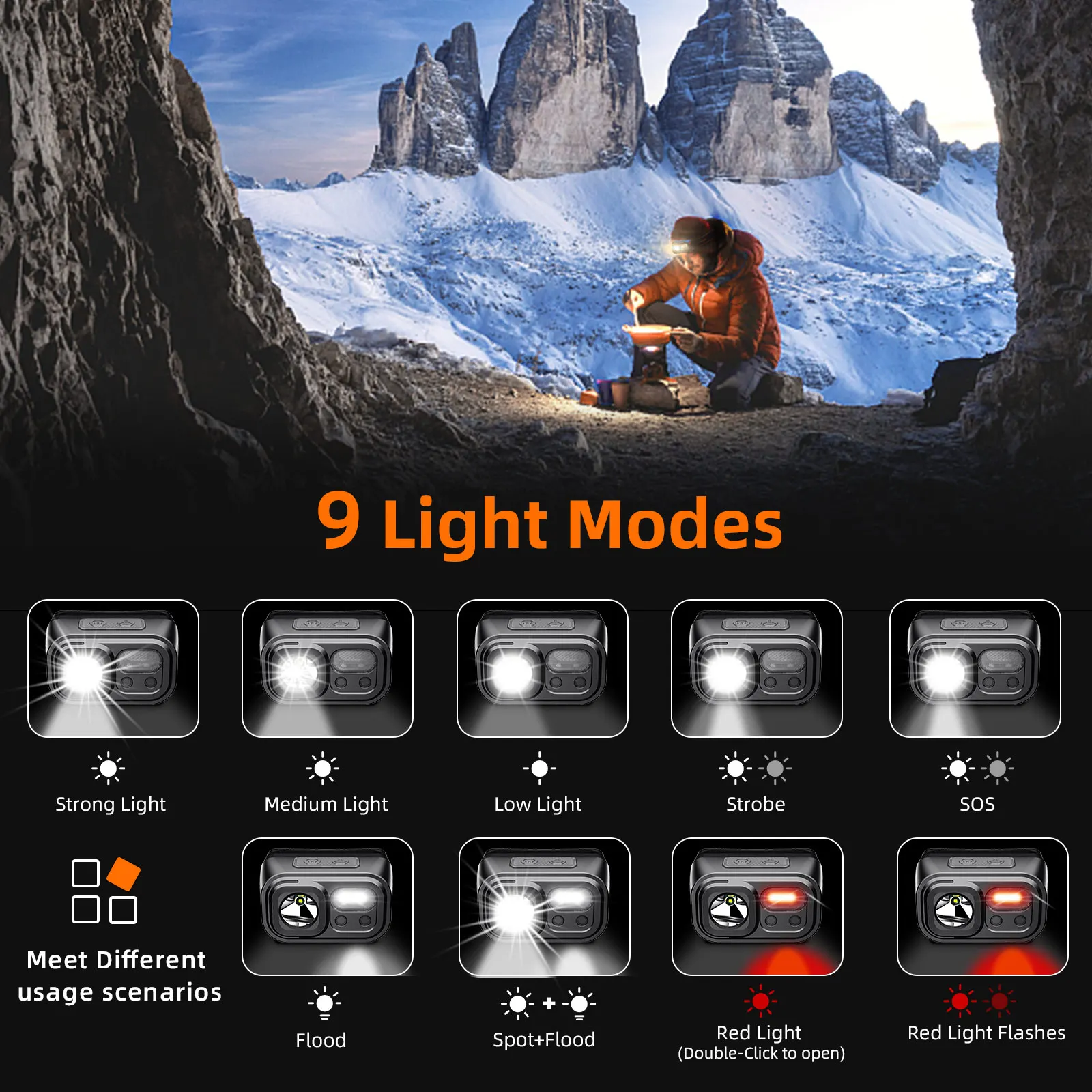 SUPERFIRE HL23 Мини-светодиодный налобный фонарь Супер яркая индукционная фара USB C Перезаряжаемый портативный налобный фонарь для кемпинга