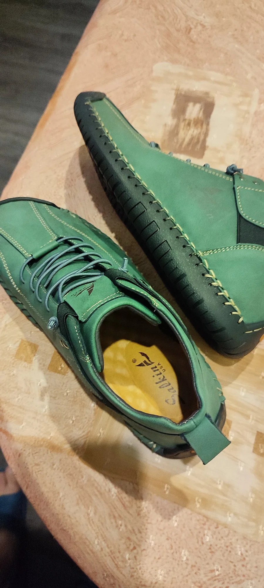 Качество хорошее, мягкие, гибкие как мокасины, снизил оценку за размер, нога у меня 44 размер, заказал 46, а он как 43, впритык,носить не буду,не знаю что делать теперь с ними,кому нибудь отдам кому по ноге будут.В общем с размером думайте,кот в мешке.А качество отличное,жаль.