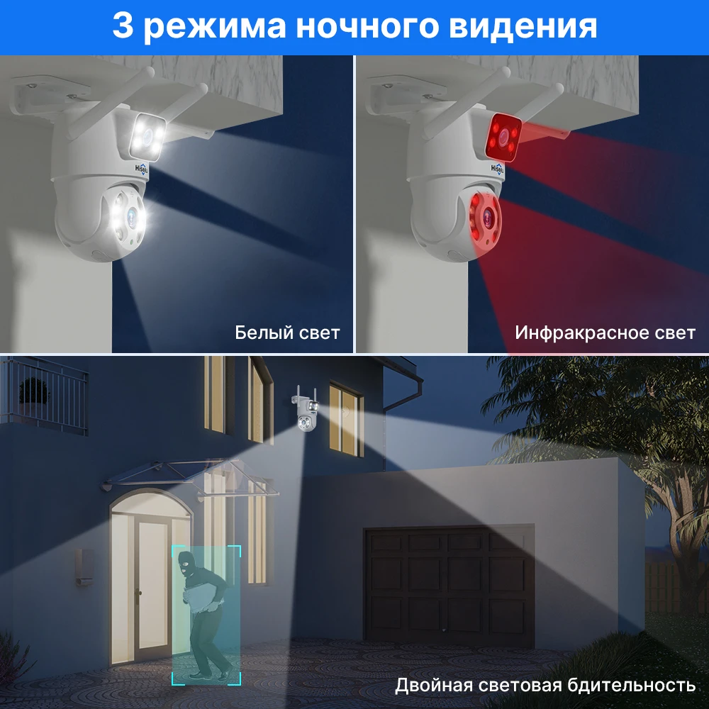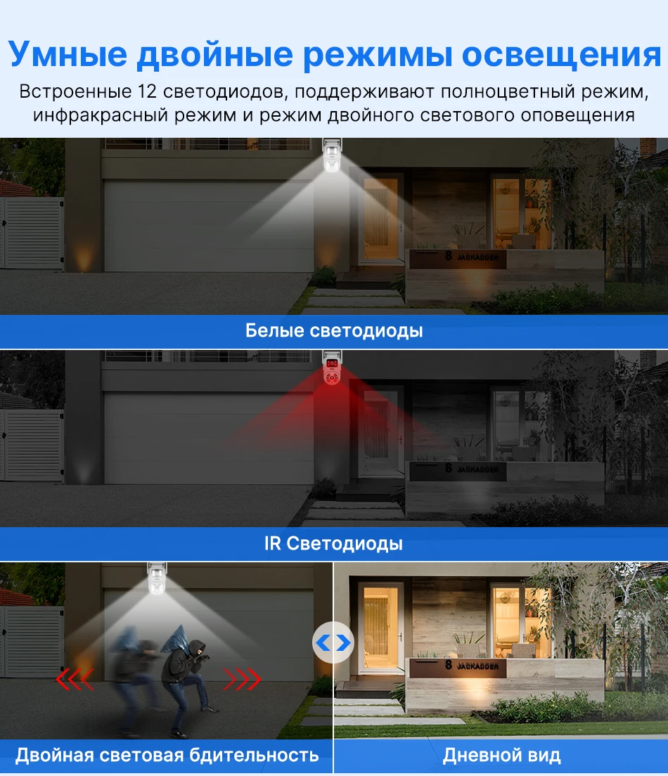 -Двойной светильник дизайн источника, встроенный инфракрасный светильник + белый светильник, инфракрасное ночное видение и полноцветное ночное видение;