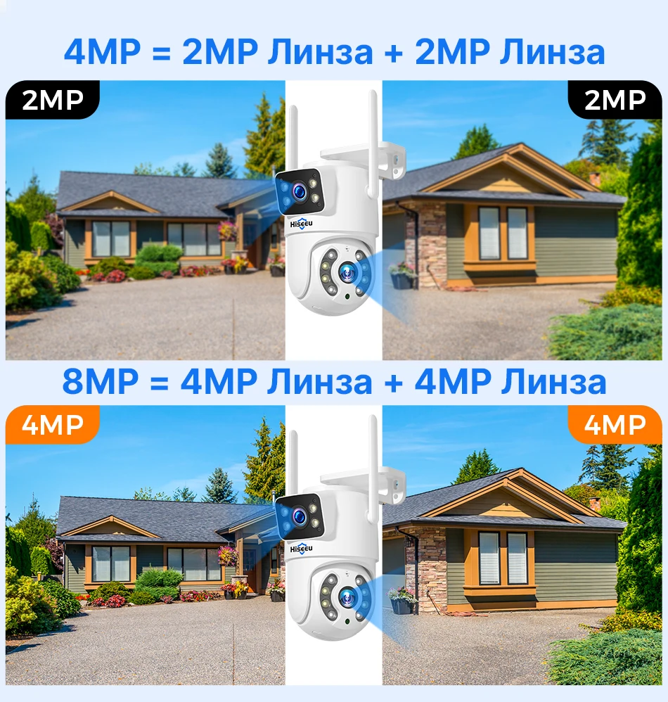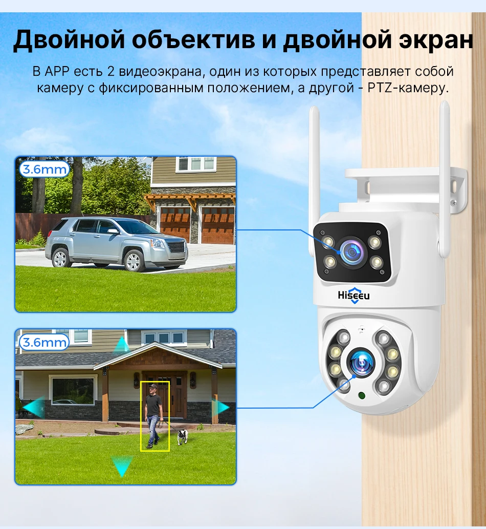 Hiseeu 4K 8MP Wifi камера наблюдения двойной объектив 4X цифровой зум AI человека обнаружения ONVIF Беспроводной Открытый безопасности PTZ IP камеры