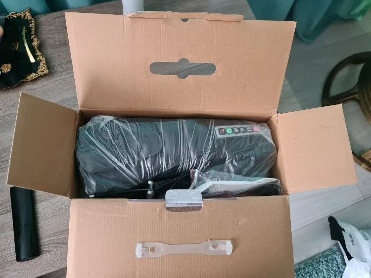 Быстрая доставка, 8 дней до НВРСК, привёз курьер. Угол коробки помятый (без косяков не могут). Сам массажёр сделан добротно, всё соответствует описанию на сайте, свои функции выполняет. Единственное - при массаже ролики издают звук (поскрипывание или стук), на работу не влияет. Другие покупатели тоже об этом пишут. Отослал видео работы массажёра продавцу, он отвечает, что массажёр новый детали притираются. За стук роликов снял одну звезду. Продавцу спасибо за адекватное общение и быструю доставку посылки.