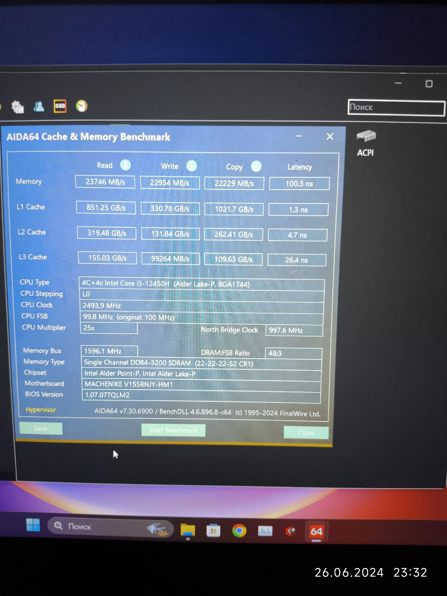 Ноутбук не совсем соответствует описанию. Заявлено 16 gb оперативной памяти в двухканальном режиме, по факту одноканальный режим. Пришлось докупать плашку памяти. Заявлена возможность установить дополнительный ssd, но отсутствует шлейф для подключения, который по мнению продавца я должен найти и купить сам. Bios максимально урезан, кроме как поменять загрузочный диск более ничего нельзя. Как следствие достаточно неплохой процессор задушен оперативной памятью с пропускной способностью в двухканальном режиме 40000mb/s и задержками 106ns. Так же не включить resizable bar. Отсутствует mux переключатель т.е. видеокарта работает через встроенную графику с потерей производительности в 10-15%. Отсюда же отсутствие настройки экрана через драйвер nvidia. Как я не пытался, но понизить частоту экрана ниже 144 герц я так и не смог. Такой настройки нет. Из плюсов приятный экран, клавиатура и качетвенный тачпад. Система охлаждения справляется и самое главное не воет. Много разъемов на все случаи жизни. В целом ноутбук неплохая мультимедийная машина, мобильность портит маленькая батарея на 40wh, которая тает на глазах. Игровой он с натяжкой т.к. потенциал железа задушен заблокированными настройками bios. На фото характеристики без дополнительной плашки памяти.Dmitry S. 12 июля 2024