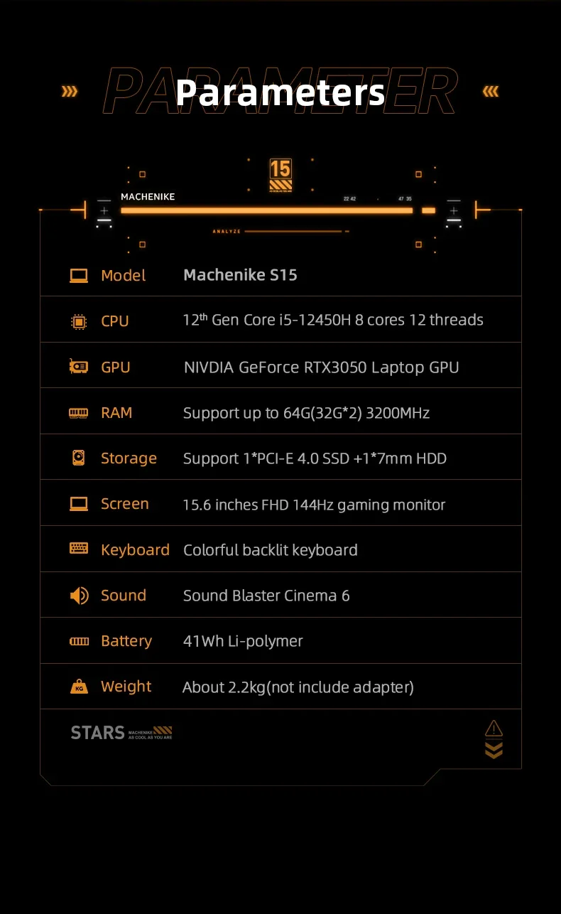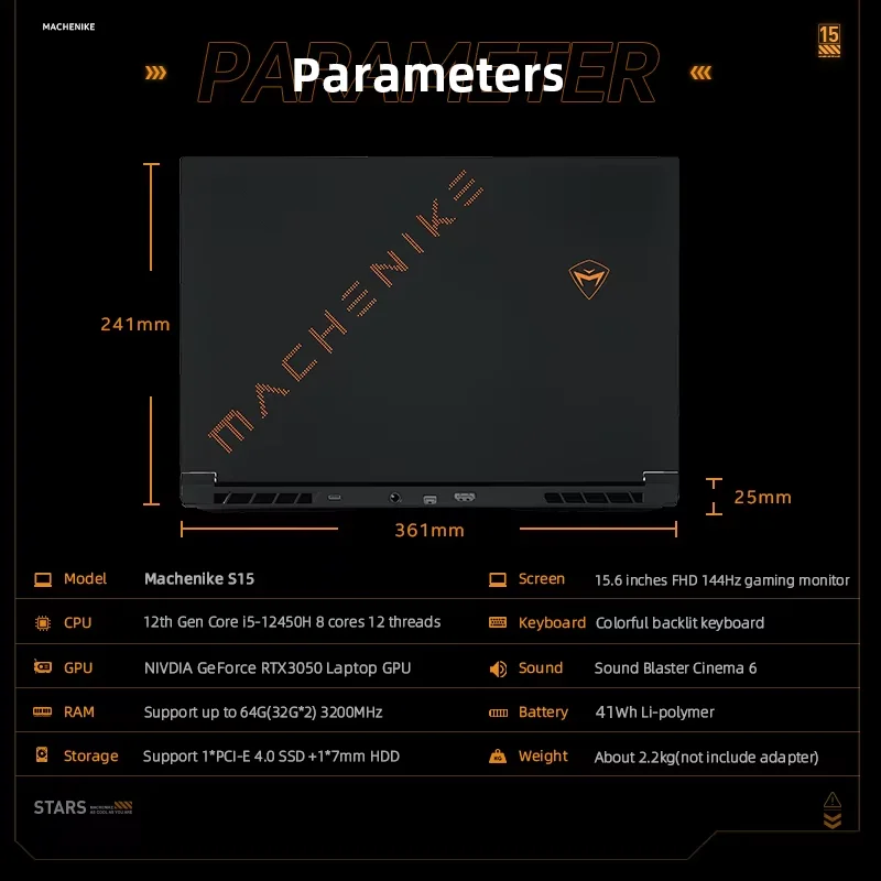 Игровой ноутбук MACHENIKE S15, 15.6", 16/512ГБ, i5-12450H, Windows