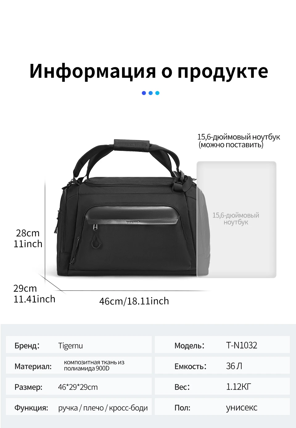 3. 36 л Вместительная дорожная сумка. Подходит для 15,6 дюймов портативных компьютеров;