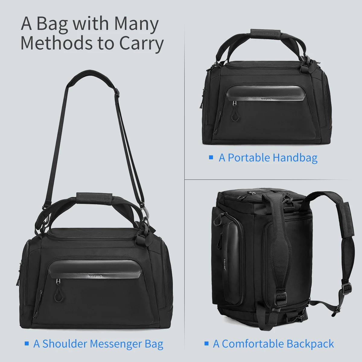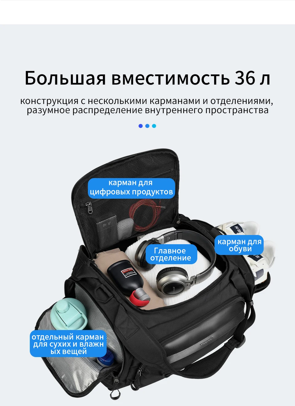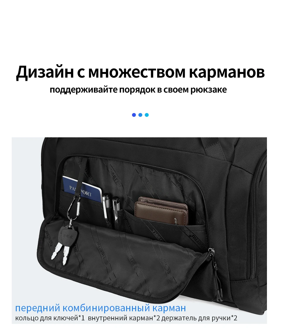 4. Дизайн с несколькими карманами, большой основной карман, влажные и сухие разделительные карманы, карманы для обуви, передние карманы на молнии, боковые карманы на молнии;