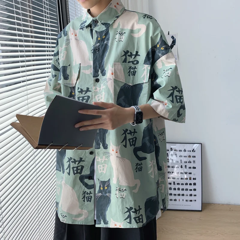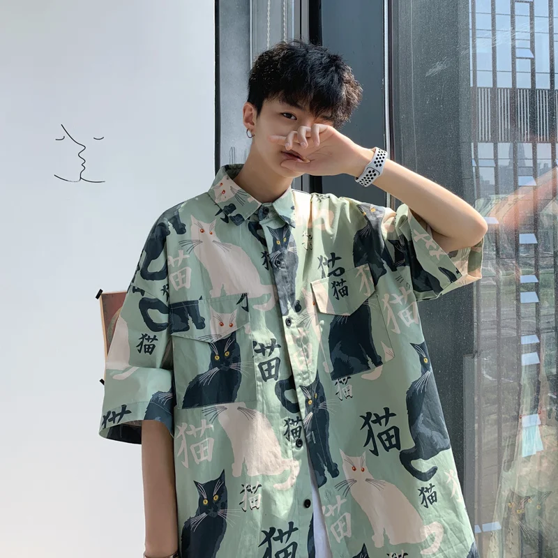 Футболка Мужская/Женская свободного покроя с коротким рукавом, крутая Повседневная рубашка с принтом аниме Кот, красивая ленивая сорочка, лето 2024