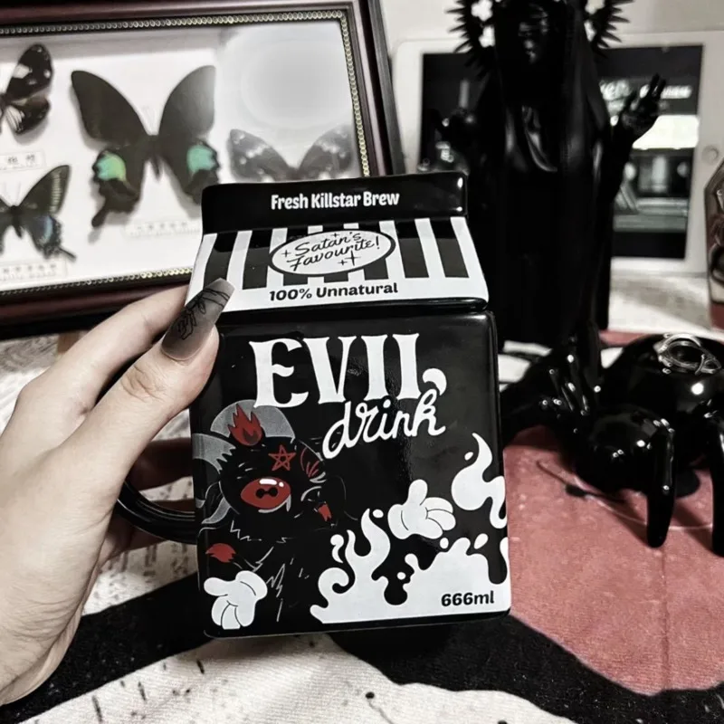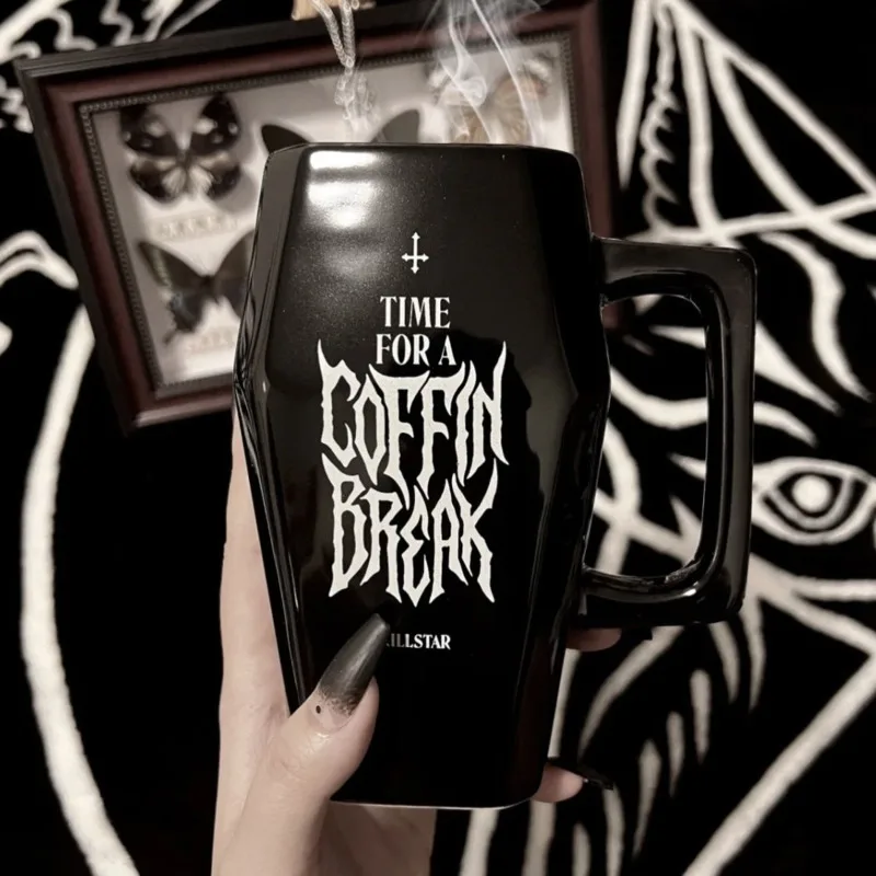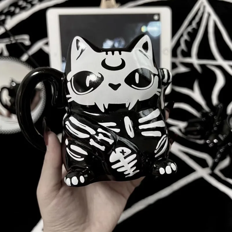 Готическая Черная керамическая кружка на Хэллоуин, мультяшный скелет, кот, летучая мышь, фотография на завтрак, кружка, подарок на Хэллоуин