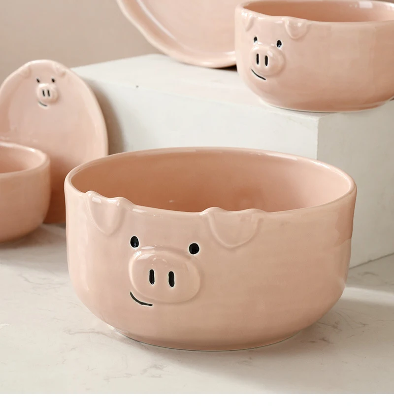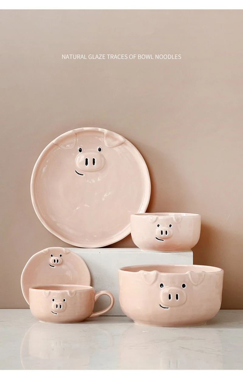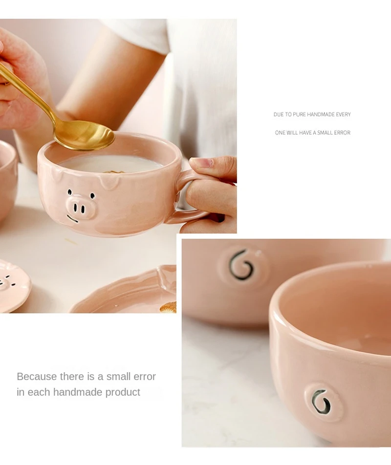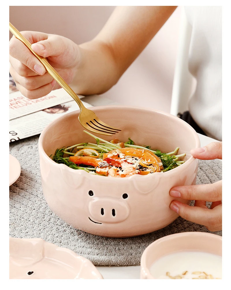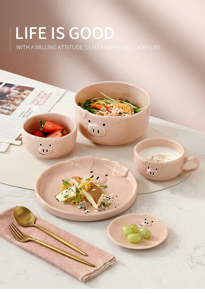 TingKe корейская милая девушка керамическая посуда японский мультфильм розовая миска свиньи тарелка блюдце чашка скандинавская домашняя тарелка для завтрака миска для салата