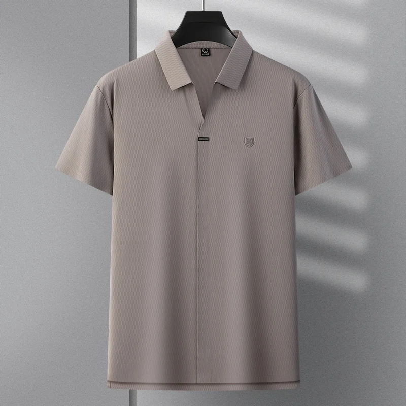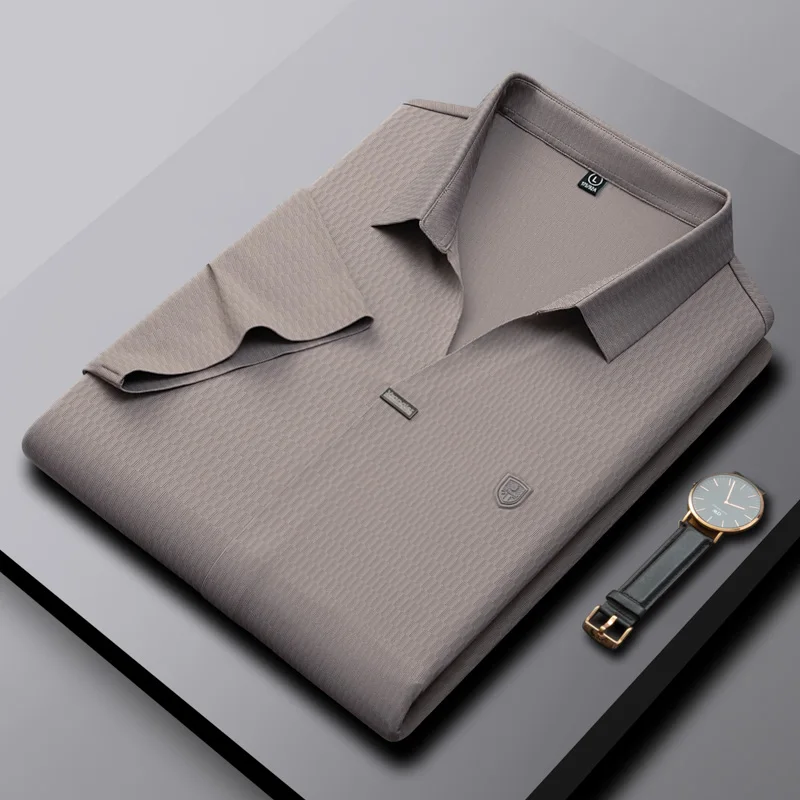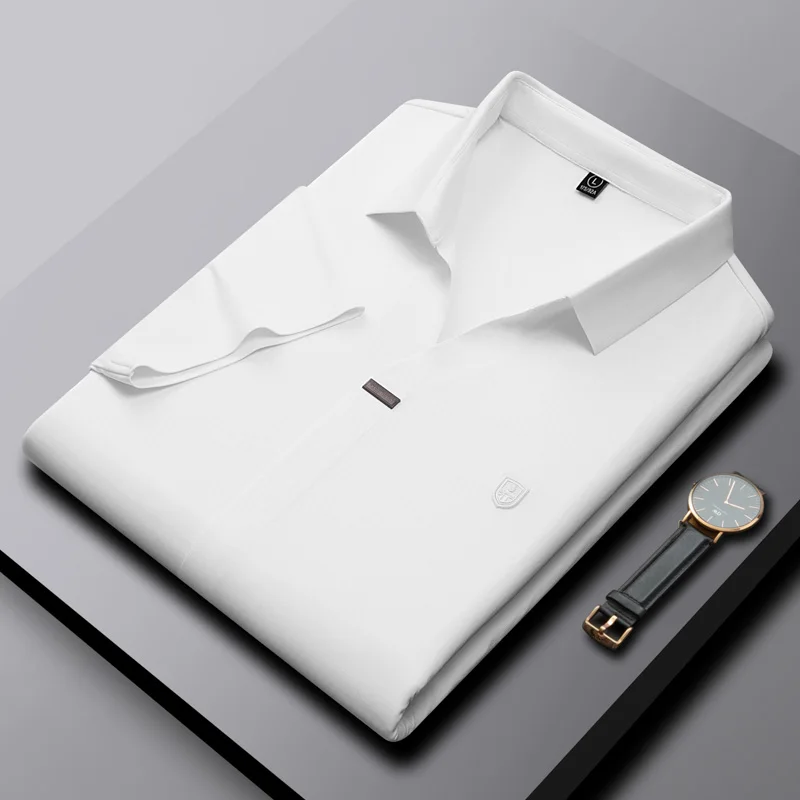 Высококачественная бесшовная повседневная мужская рубашка-поло из ледяного шелка с короткими рукавами Легкая роскошь модная Личность летняя жаккардовая футболка