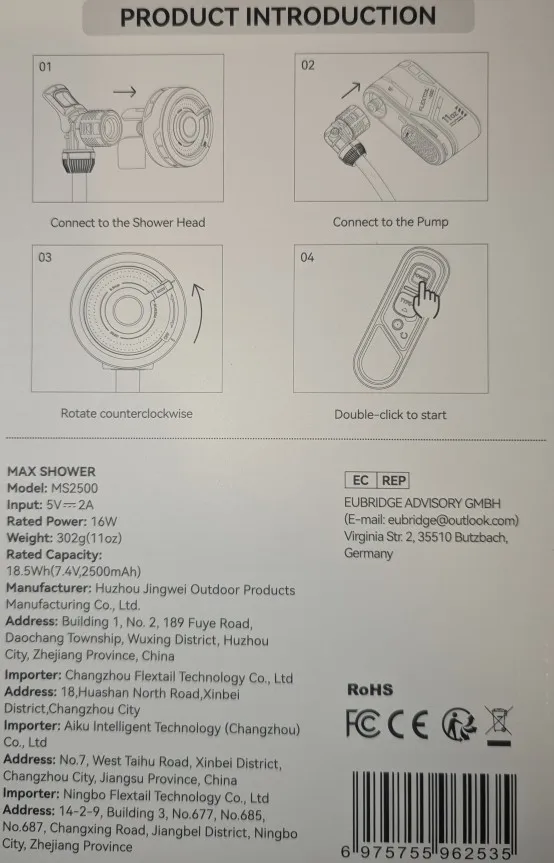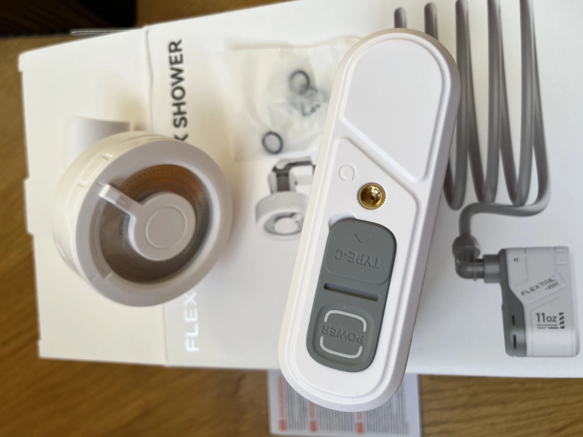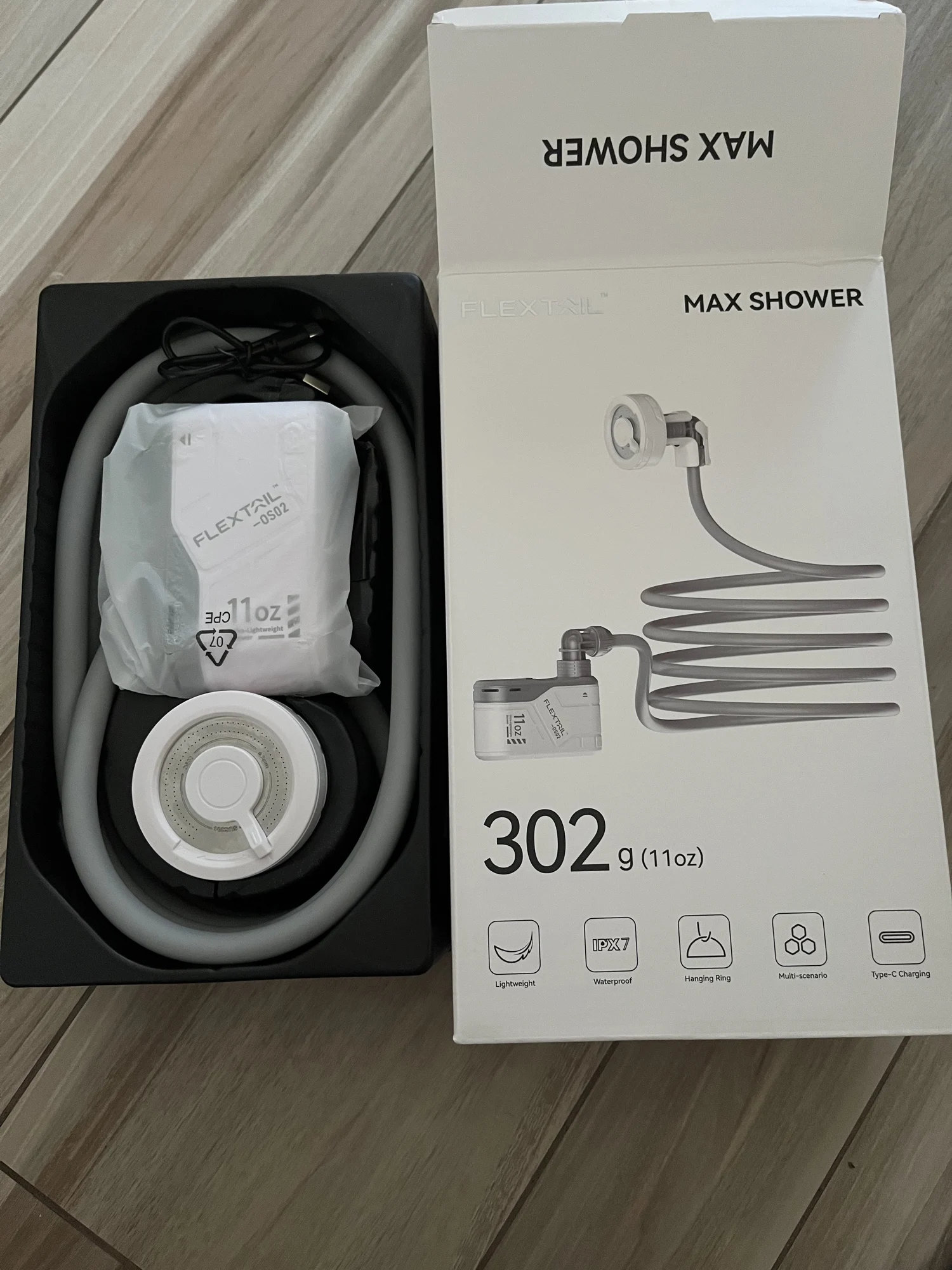 - Package Contents:MAX SHOWER x 1, Type-C Cable x 1, User Manual x 1, Airtight Rings