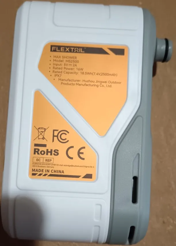 FLEXTAIL MAX SHOWER — портативный электрический душевой насос IPX7, водонепроницаемый для уличного душа, мойки автомобилей, мытья посуды, чистки домашних животных