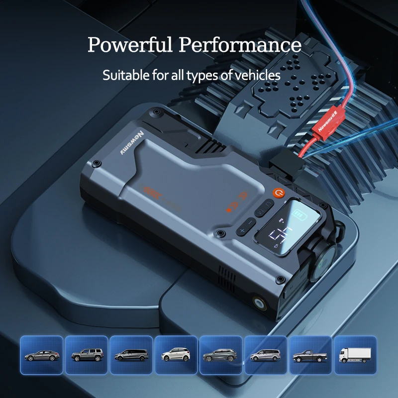 Пусковое устройство 5 в 1 с функцией повербанка, встроенным компрессором и фонарем