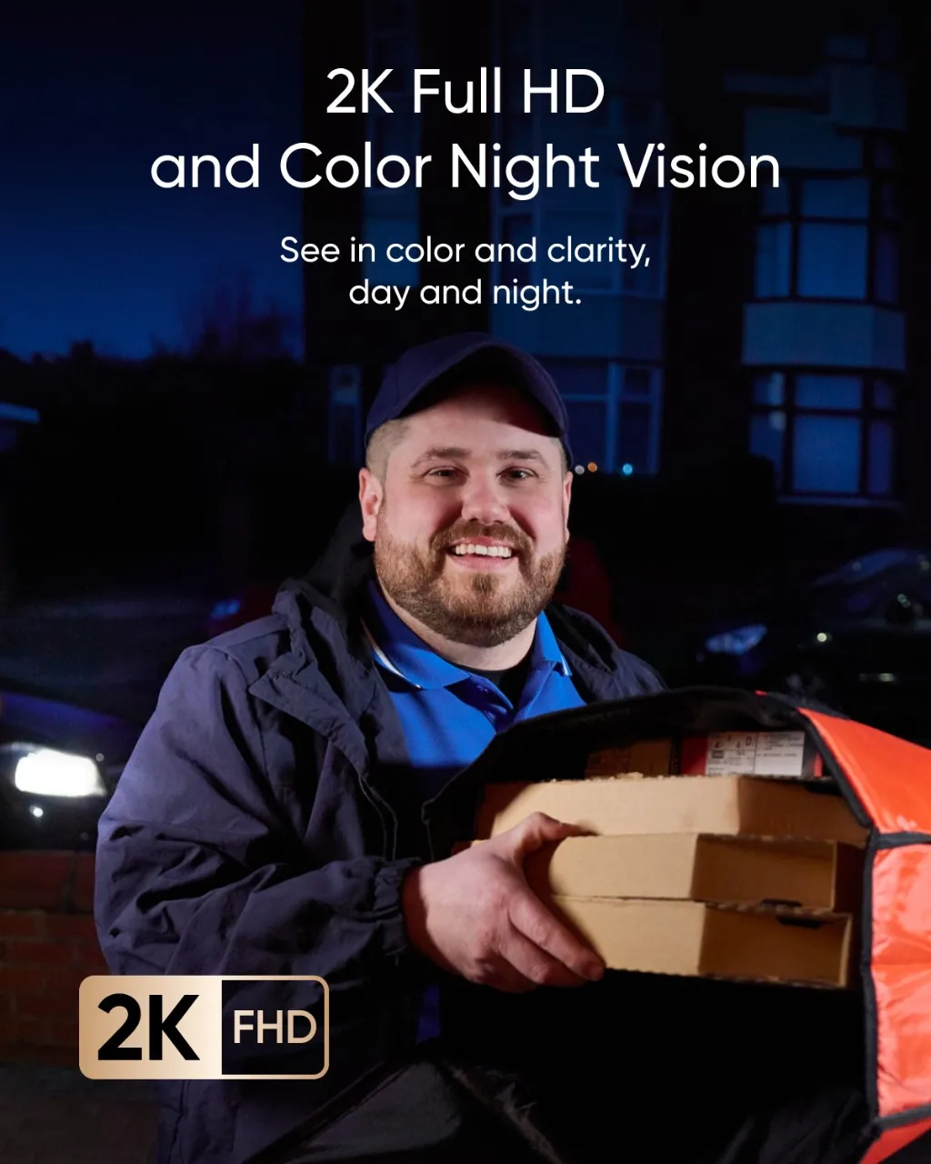Четкость 2K раскрывает больше деталей. Получите четкое и подробное изображение вашего порога и всех, кто падает.