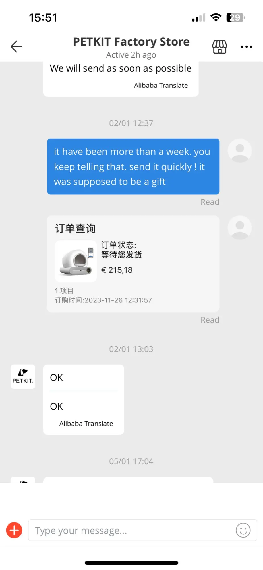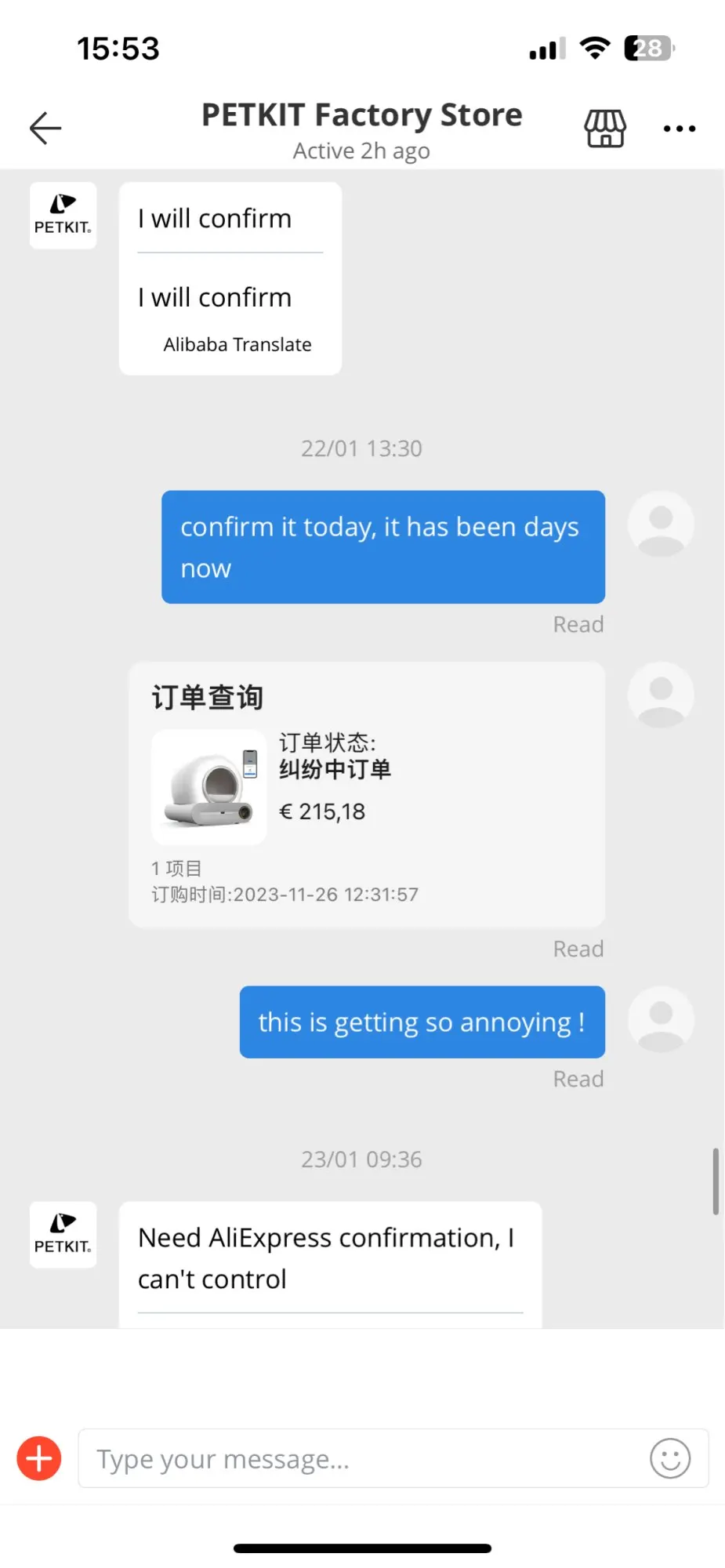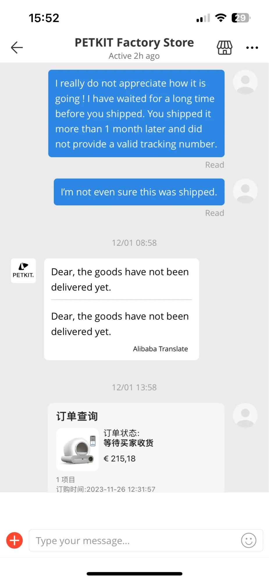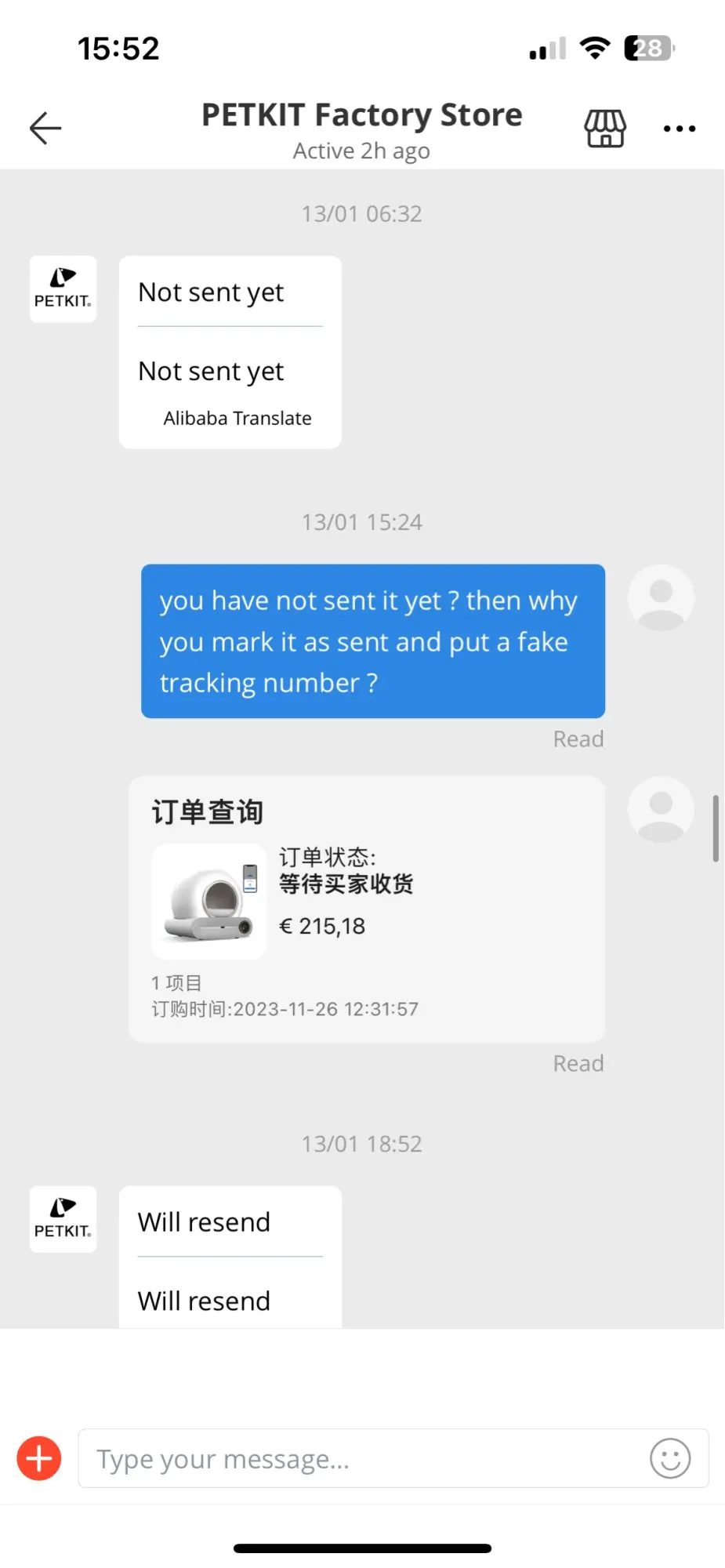 Не покупайте у этого продавца, когда цена низкая. Продавец так и не отправил товар, заставил меня ждать более 2 месяцев, говоря мне, что он отправит товар. Мне приходилось каждый день ему общаться. Через 2 месяца он поставил поддельный номер для отслеживания и сказал, что он отправлен. По номеру отслеживания это был товар, который уже был доставлен несколько недель назад в другое место. Продавец пытался получить свои деньги, предоставив поддельный номер для отслеживания. Когда я попросил вернуть деньги, он играл невежественного, не зная, как подтвердить возврат. Я писал ему сообщения каждый божий день, и это было утомительно. Я публикую сообщения, чтобы доказать вам, ребята, что этот продавец нечестный. Даже если вы видите фотографии людей, которые получили свой товар, это потому, что они заплатили полную цену. У меня были купоны, которые сделали продукт супер дешевым, и продавец не хотел его отправлять, потому что он терял деньги. Что вы сеете, то что вы пожинаете! Нечестность вернет вам то, что вы заслуживаете