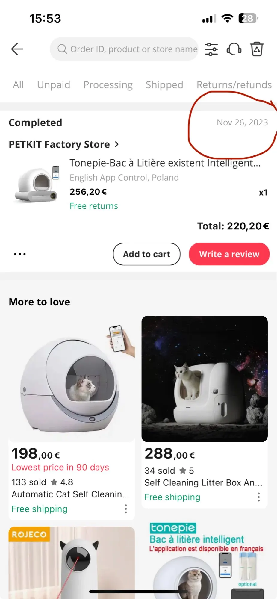 - cat litter:self cleaning litter box