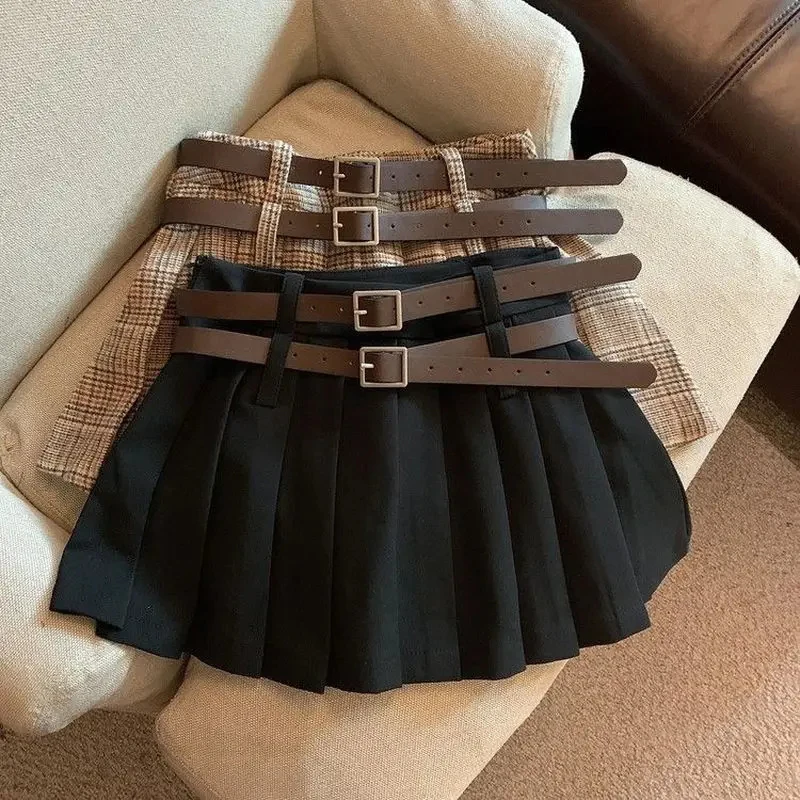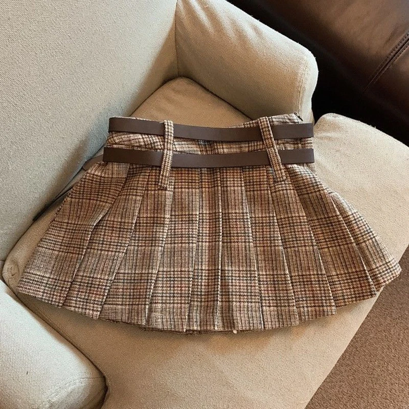 Винтажная клетчатая мини-юбка MEXZT для женщин с поясом Y2K Элегантная модная облегающая юбка Plissé в стиле выше колена на о...