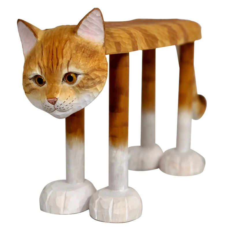 Стул для обуви из массива дерева ручной работы с резным оранжевым котом