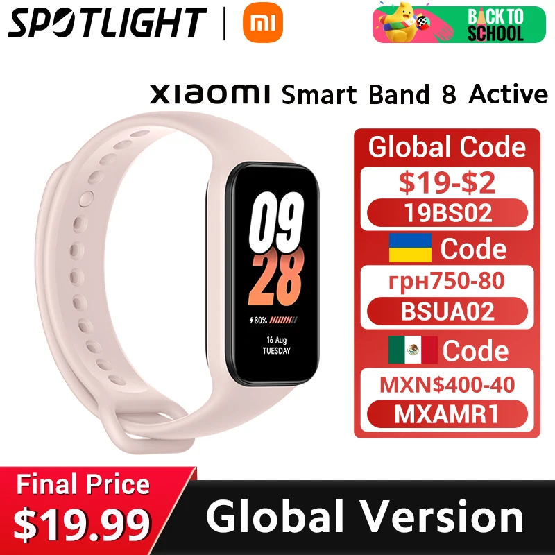 [Мировая премьера] Новый Xiaomi Mi Band 8 Active Global Version 1,47 "Дисплей 50+ фитнес-режимов Мониторинг сердечного ритма SpO2 Смарт-браслет