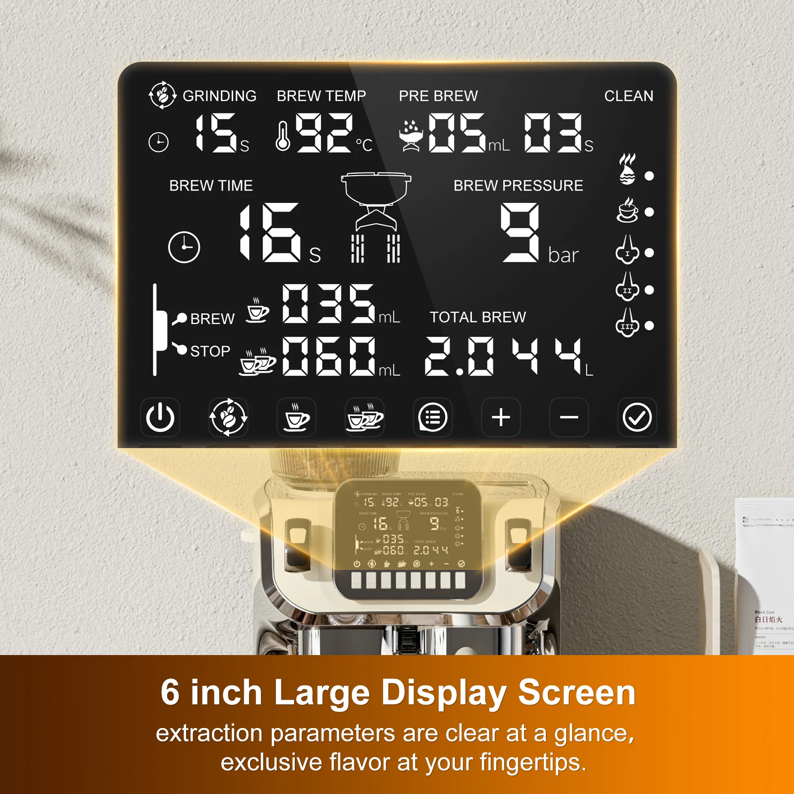 Полуавтоматическая кофемашина Mcilpoog TC520 с мельницей и пароваркой, 6-дюймовый большой дисплей, кофеварка для дома и офиса.
