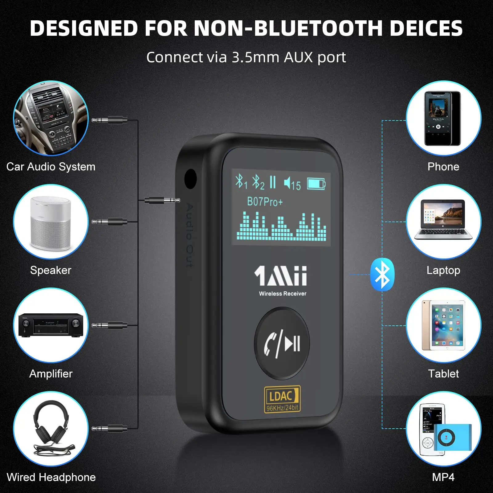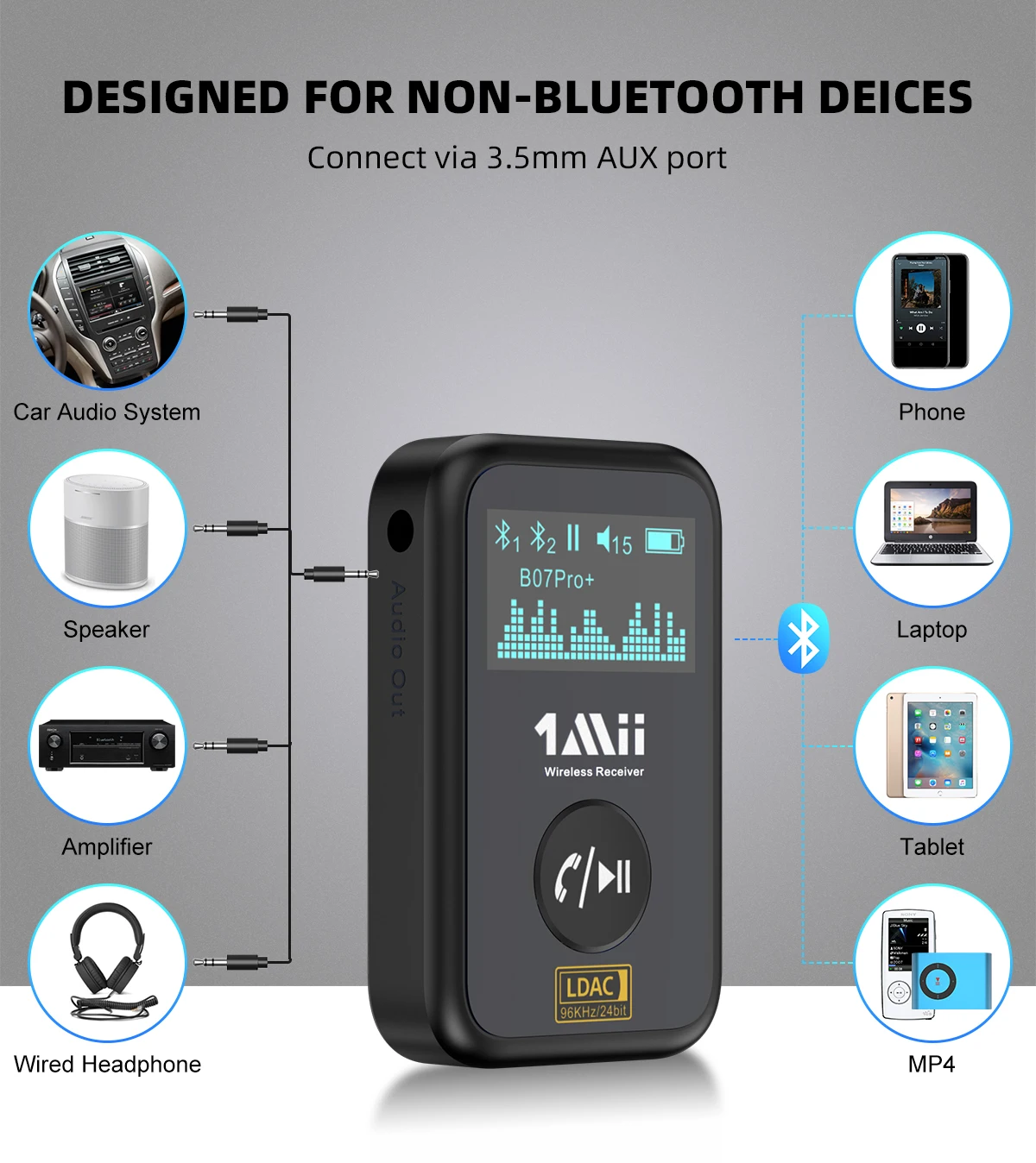 Bluetooth адаптер 1Mii B07 Pro+ с качественным звуком и поддержкой большинства кодеков