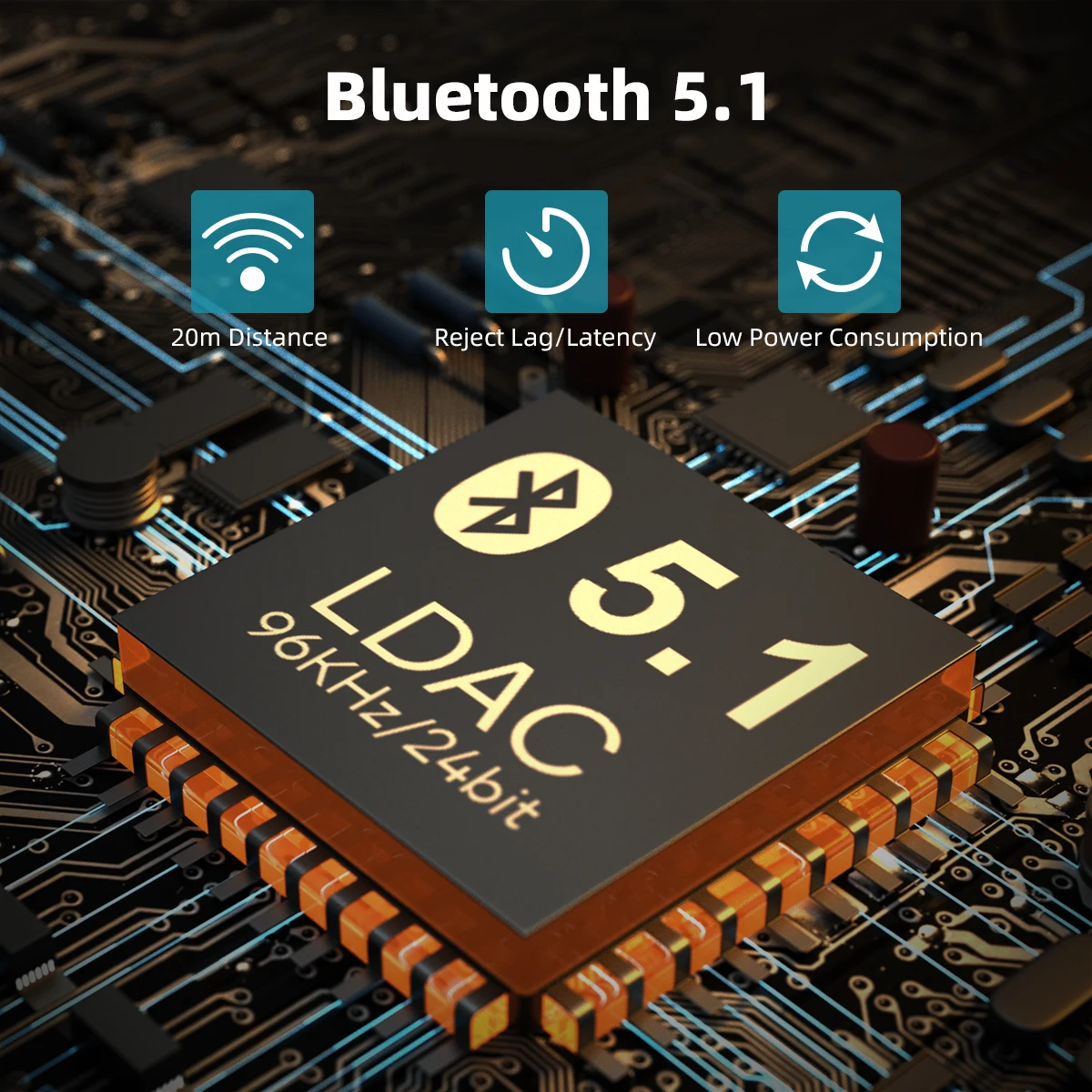 Автомобильный адаптер Bluetooth использует двухрежимный аудиочип высокого класса QCC5125 для поддержки высококачественного звука LDAC hall of fame 96K/24 бит, А также форматы Bluetooth высокой четкости LDAC/aptX HD/AAC. Это позволяет обычным устройствам без Bluetooth, таким как старые домашние кинотеатры, стереосистемы, автомобильные стереосистемы и мультимедийные системы, немедленно стать аудиоустройствами Bluetooth, что позволяет слушать высококачественное, неразрушающая музыка, доставляемая нашим музыкальным приемником.