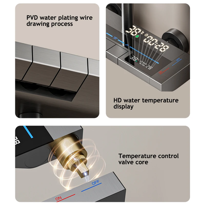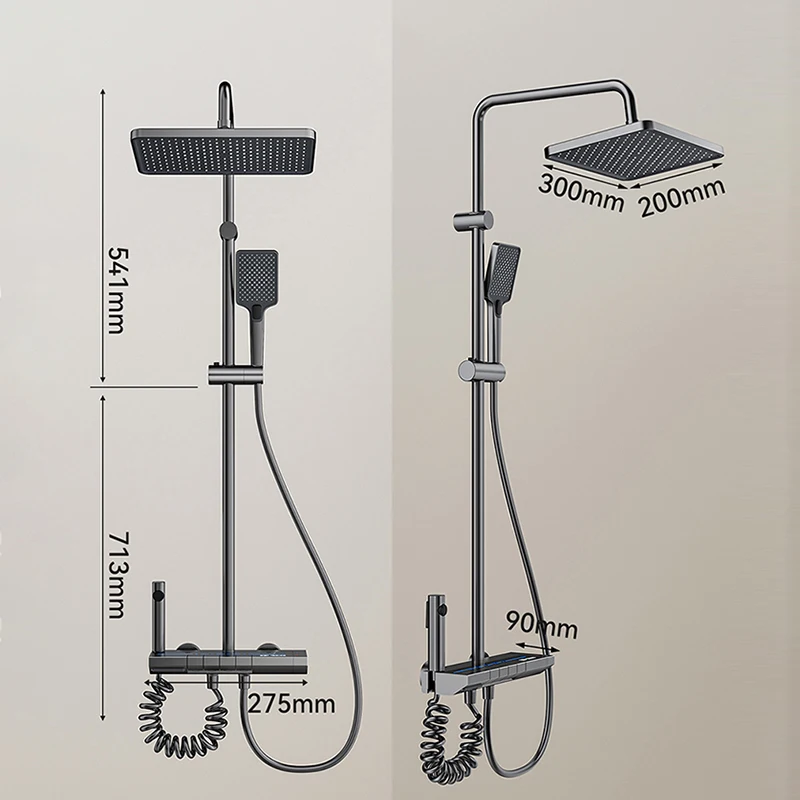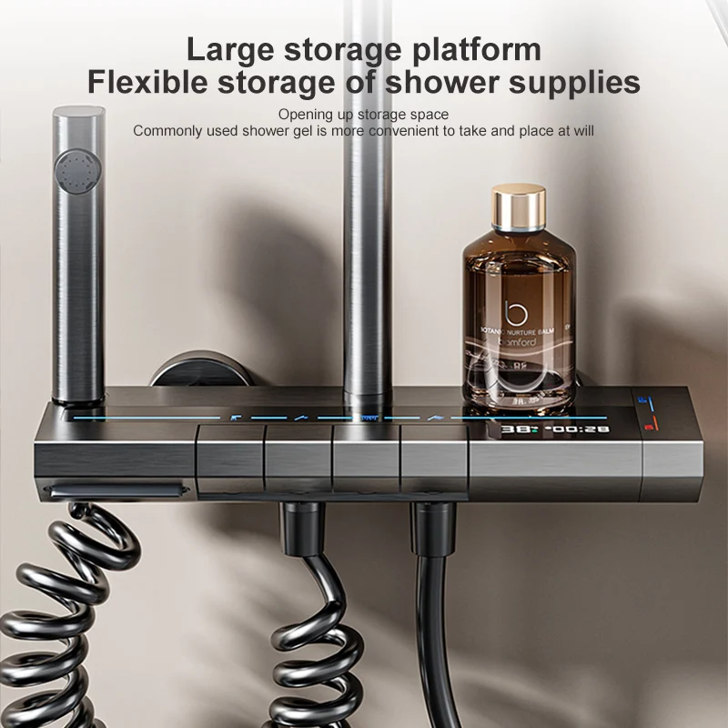 Полный комплект для душа в ванной комнате, серая Душевая система с цифровым дисплеем, Душевая система с кнопкой пианино и внешними эргономичными смесителями, душевая головка