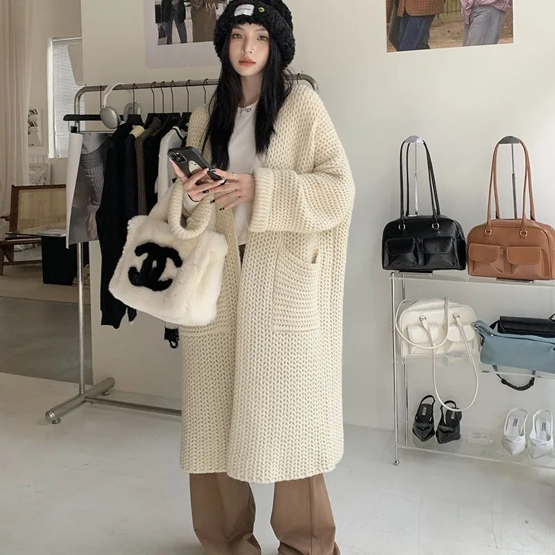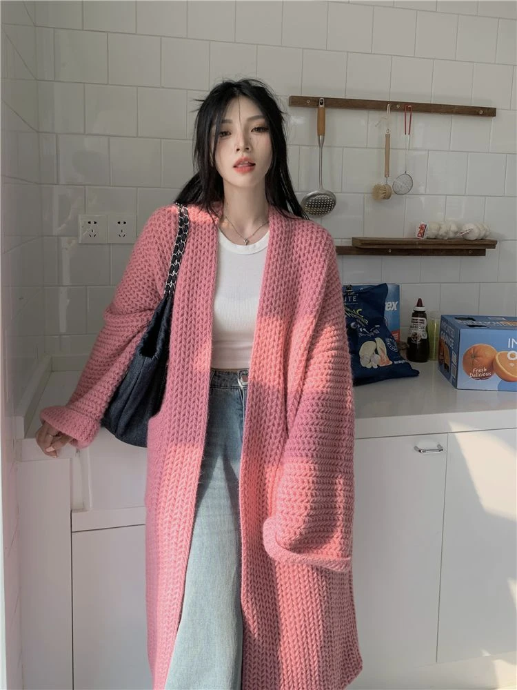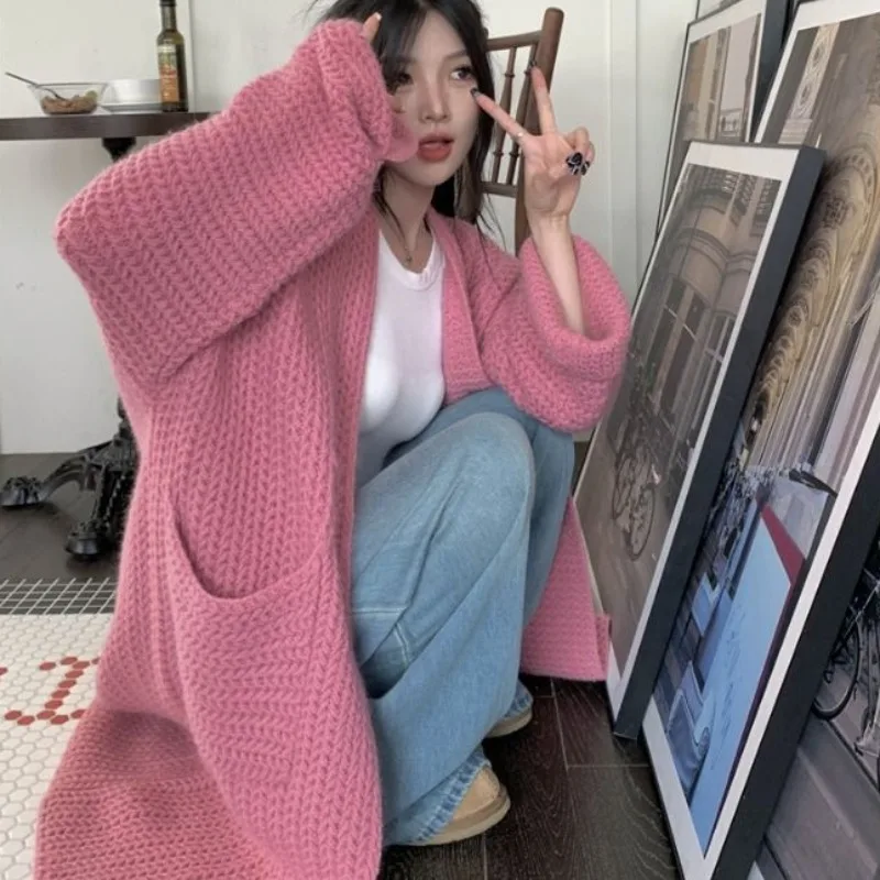 Кардиган женский однотонный свободного покроя, элегантный универсальный теплый вязаный жакет средней длины, элегантный наряд в стиле преппи, на осень-зиму