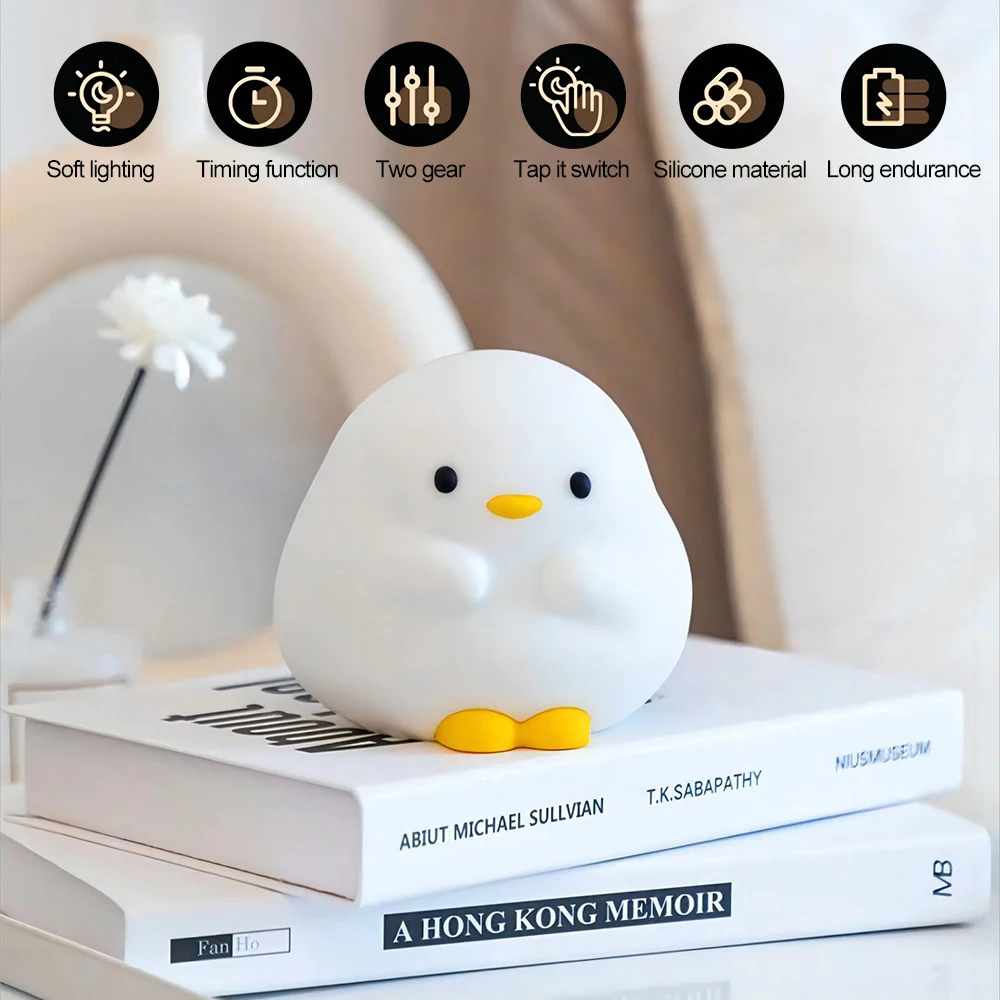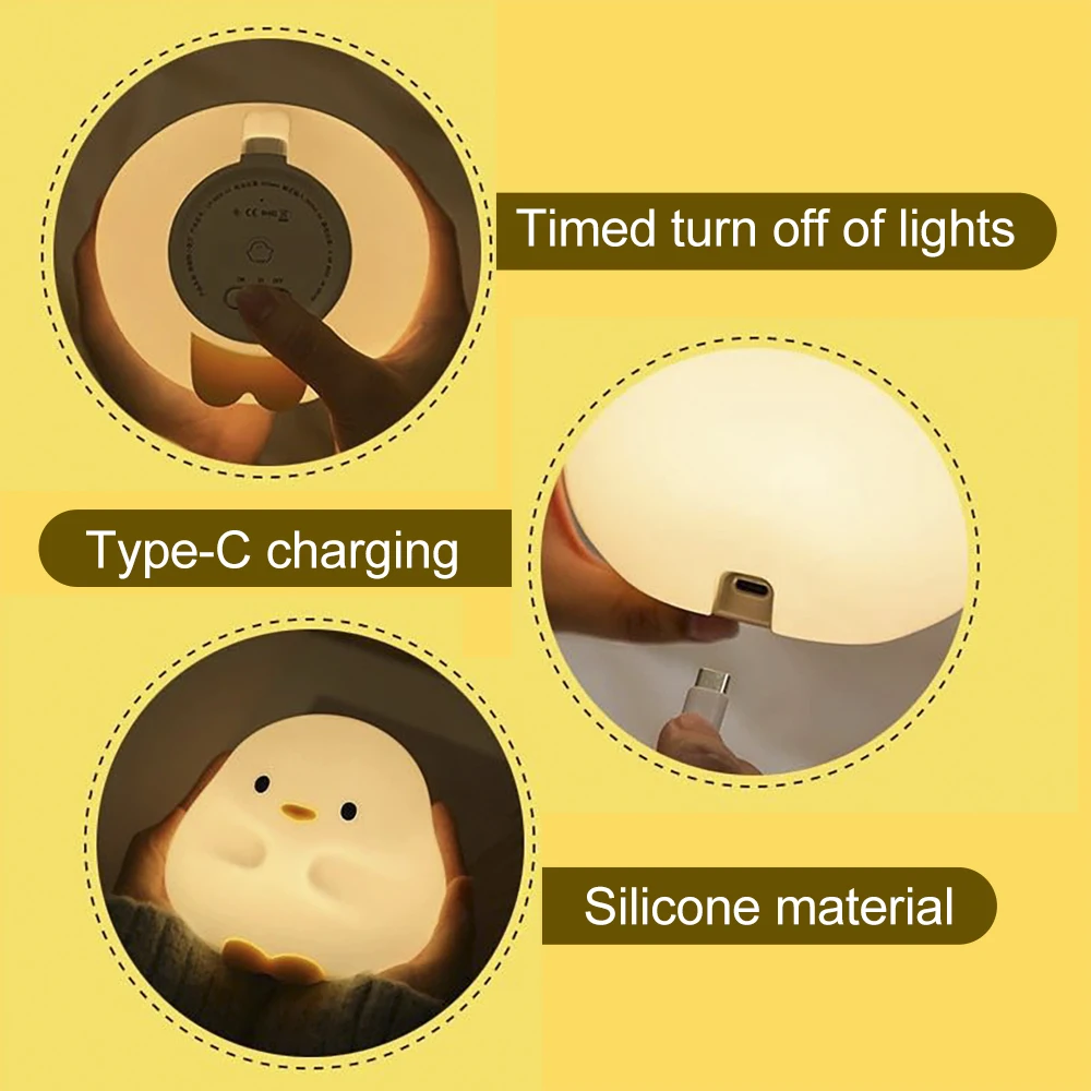 Милая утка, искусственная Ночная лампа, мультяшный силиконовый USB Перезаряжаемый фонарь для сна, сенсорный датчик времени, прикроватная лампа для спальни, детский подарок
