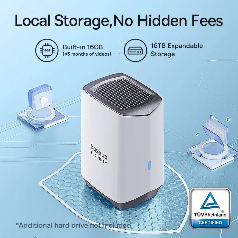 Baseus N1 поставляется со встроенным хранилищем eMMC объемом 16 ГБ, которое может сохранять видео до 3 месяцев без утечек