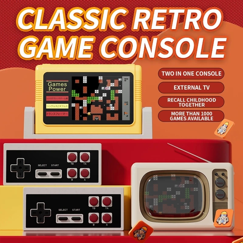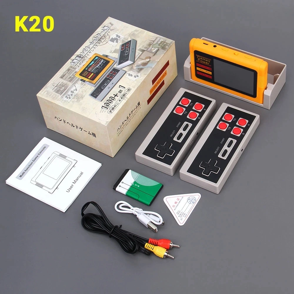 Мини ТВ игровая консоль K20 8 бит Ретро видео игровая консоль 1000 игр с двумя беспроводными контроллерами для портативного игрового плеера FC