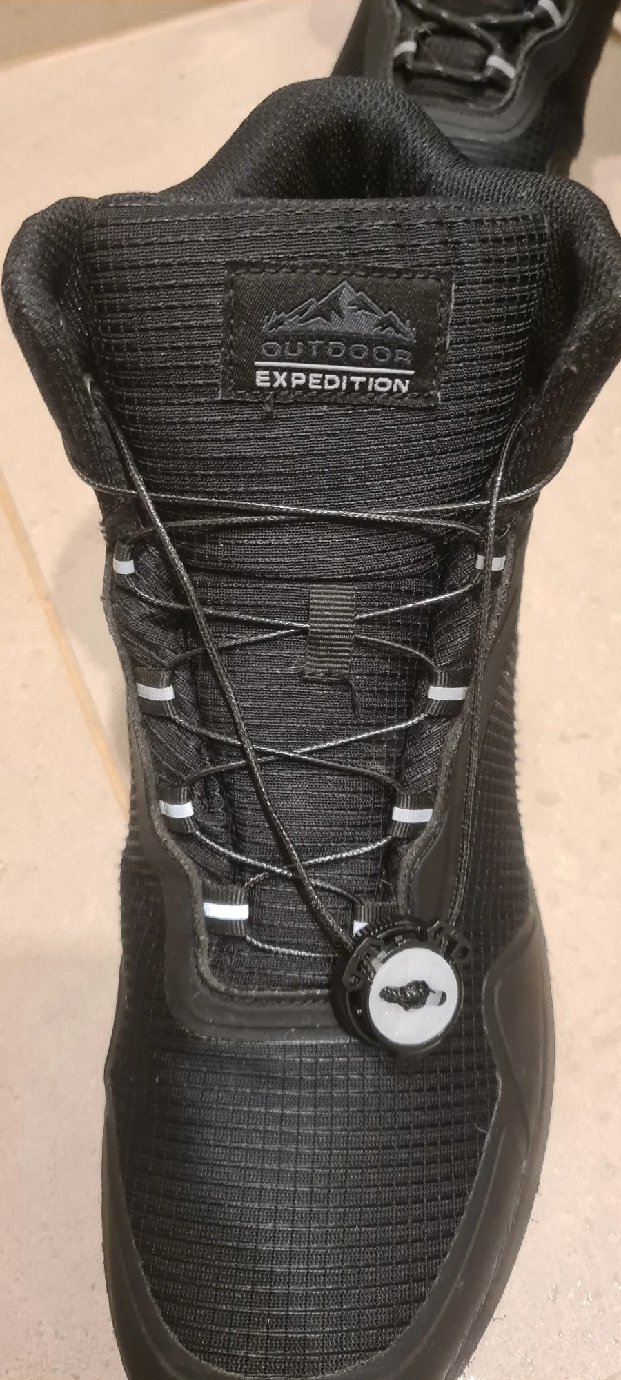 давно хотел boa систему на ботинки. посмотрим как будут в эксплуатации. монтаж достаточно простой. основу лучше пришить к месту установки. иначе не будет затягивать, а оторвется от 2х стороннего скотча и будет прокручиваться. нитка с иголкой в комплекте и 2х сторонний скотч в коплекте. я пока не пришил, но я и не затягиваю сильно. при завязывании узла обязательно оставить достаточно длинны шнурка, чтобы ноги влезала в обувь!