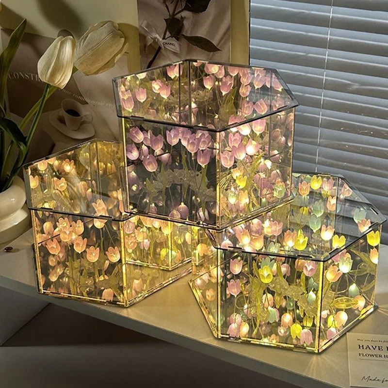 DIY Искусственные розы, тюльпан, орнамент ручной работы, люминесцентные в темноте, Готический Декор для комнаты, домашний декор для девочек, настольные украшения