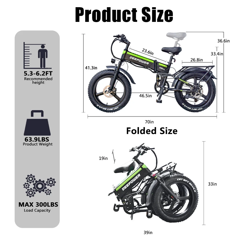 DEEPOWER 2000 Вт Электрический велосипед для взрослых 48 В 25 Ач 20-дюймовый складной электрический велосипед с толстыми шинами Горный масляный тормоз 2000 Вт Ebike