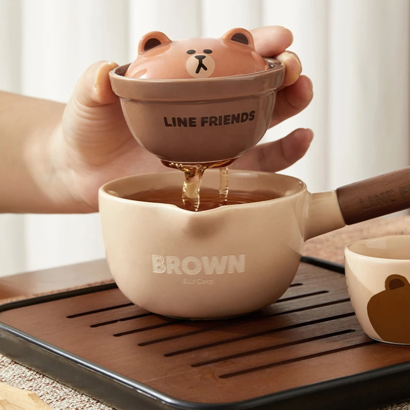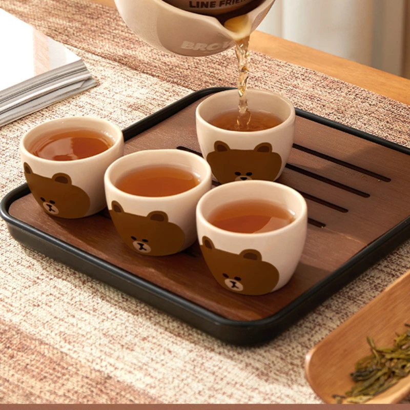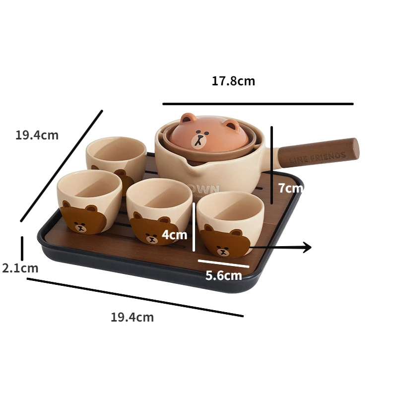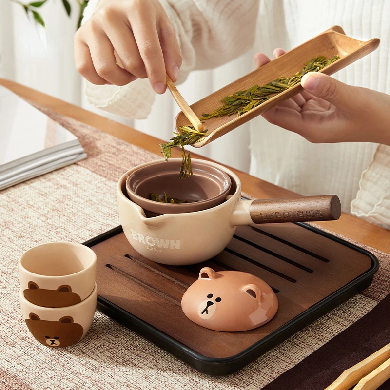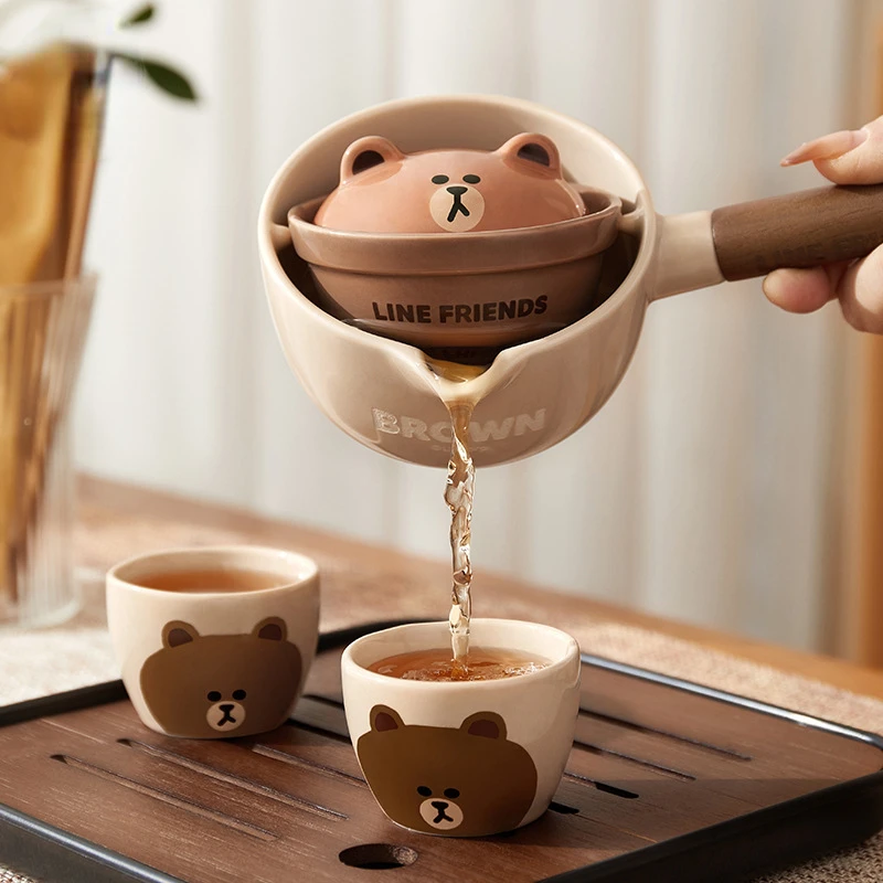 Креативный керамический чайный набор с медведем, 1 горшок, 4 чашки, портативный Семейный чайный набор, дорожный ленивый чайник с боковой ручкой, быстрая чашка, пузырьковый чайный поднос
