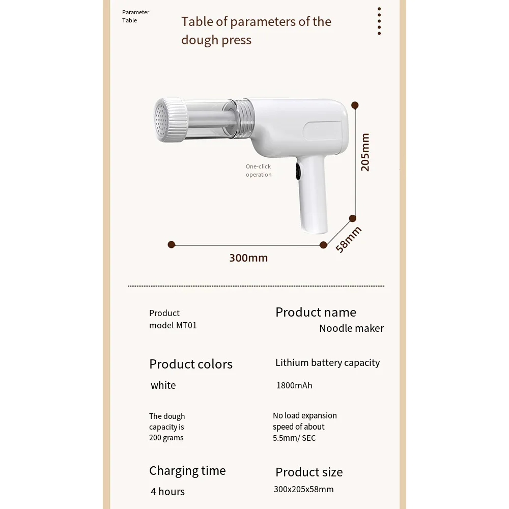 3.Портативность: после зарядки вы можете взять нашу автоматическую машину для производства лапши, куда захотите.Полностью заряженная лапша можно готовить 45 раз.Мощная литиевая батарея гарантирует длительный срок службы батареи и позволяет нескольким людям одновременно наслаждаться домашней макаронами.