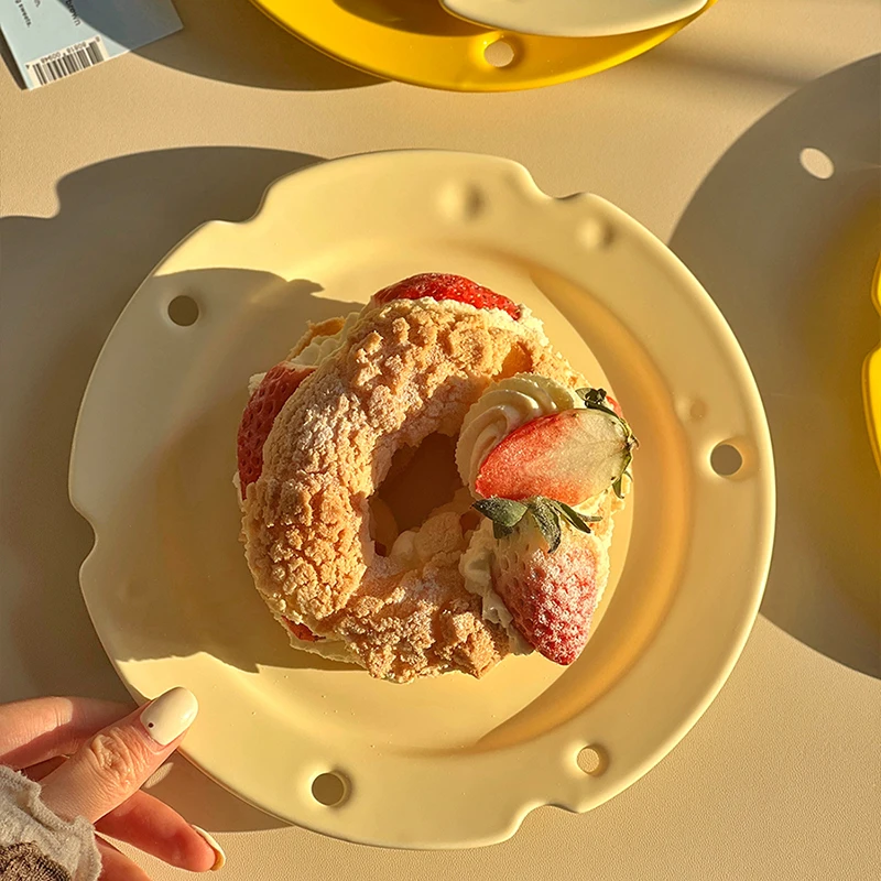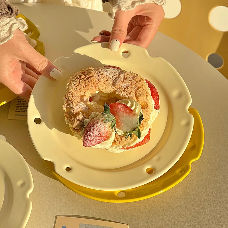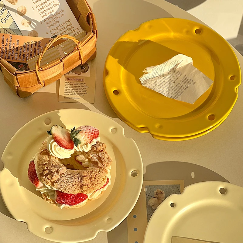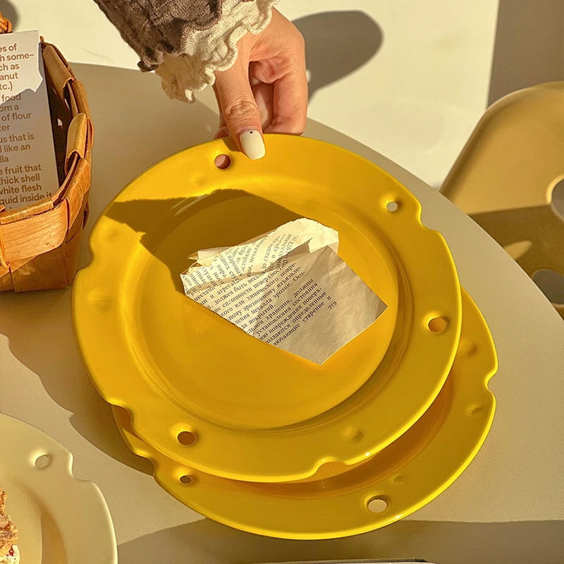 Креативная тарелка для сыра, прекрасная домашняя тарелка с вырезами, десертная тарелка, однотонная керамическая посуда для завтрака