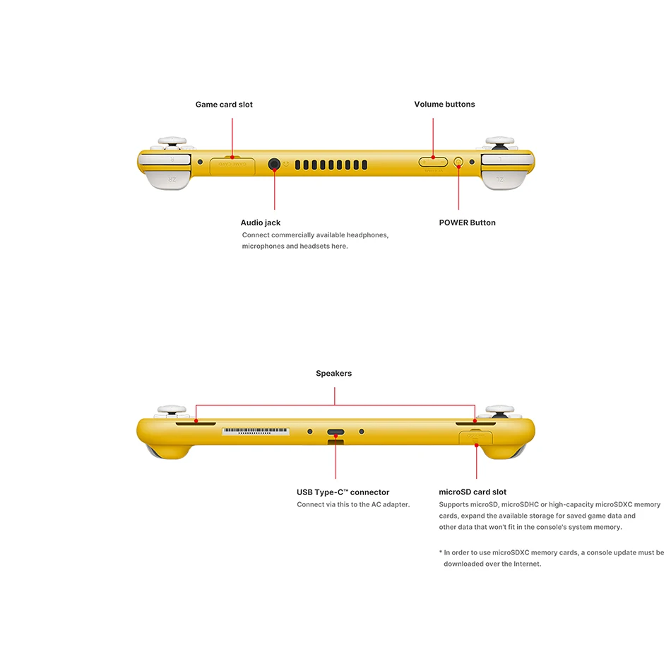 Слот для карты MicroSD------ Совместимость с картами памяти microSD / microSDHC / microSDXC.* Для использования карт памяти microSDXC необходимо загрузить обновление консоли через Интернет.