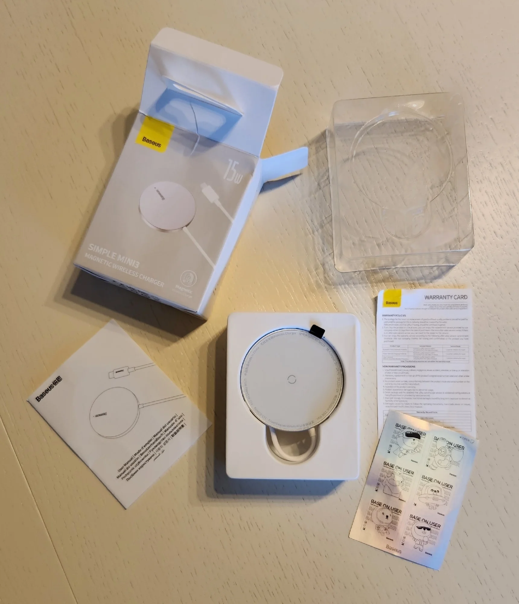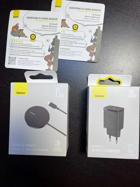 Купил комплект на распродаже за 1490р. Товар в Ставрополь пришел за 7 дней (чуть дольше чем планировалось). Упакован был оч. качественно, что сохранило даже коробки в идеальном состоянии. Сетевой адаптер, хоть и компактный, но приятно чувствуется в руке. Беспроводная зарядка сделана качественно. Baseus-марку держит. При подключении магнит хорошо фиксируется, появляется анимация. За 15 мин IPhone 13 c 46% до 59% зарядил. Не очень быстро, но детали успели нагреться. В целом (цена/качество) покупкой доволен, спасибо продавцу.Arsen A. 28 марта 2023