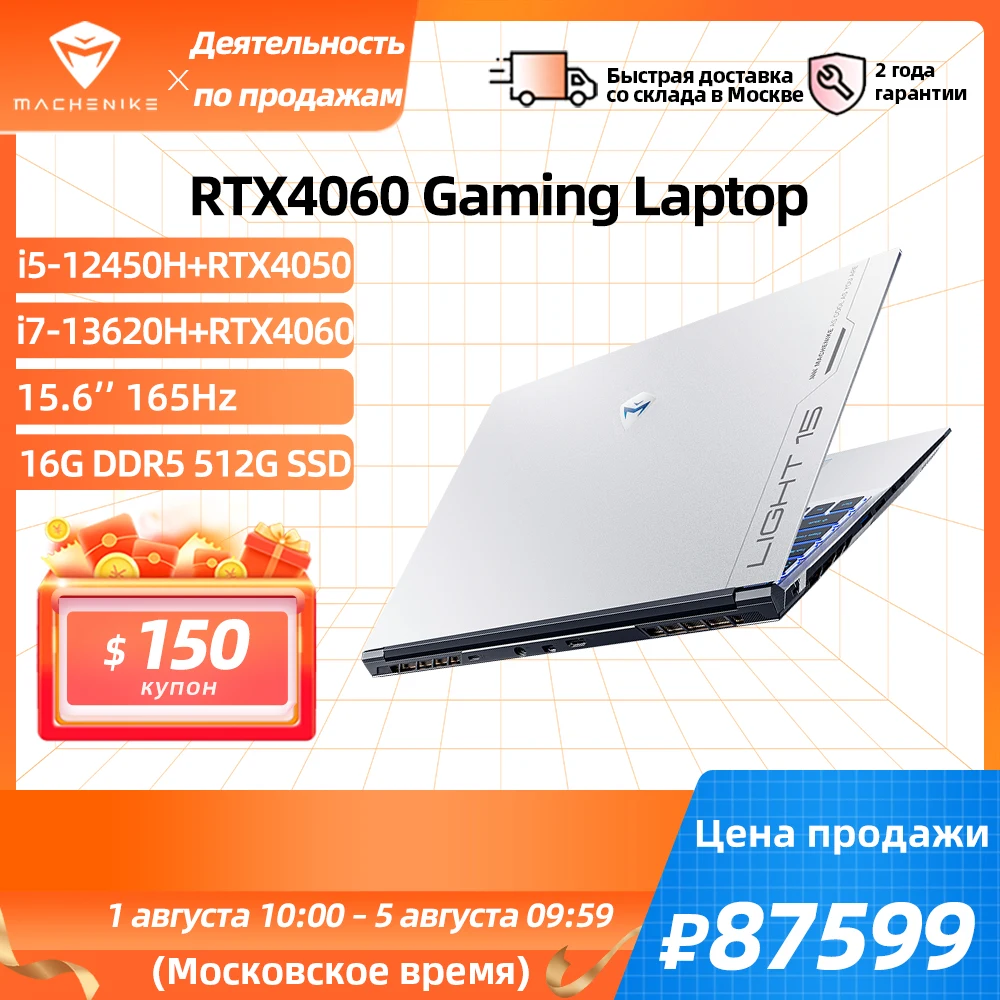 Предзаказ Игровой ноутбук Machenike светильник 15 Mate i5-12450H RTX4050 i7-13620H RTX4060 15,6 дюймов 165 Гц 100% SRGB 16 Гб RAM DDR5 512G SSD